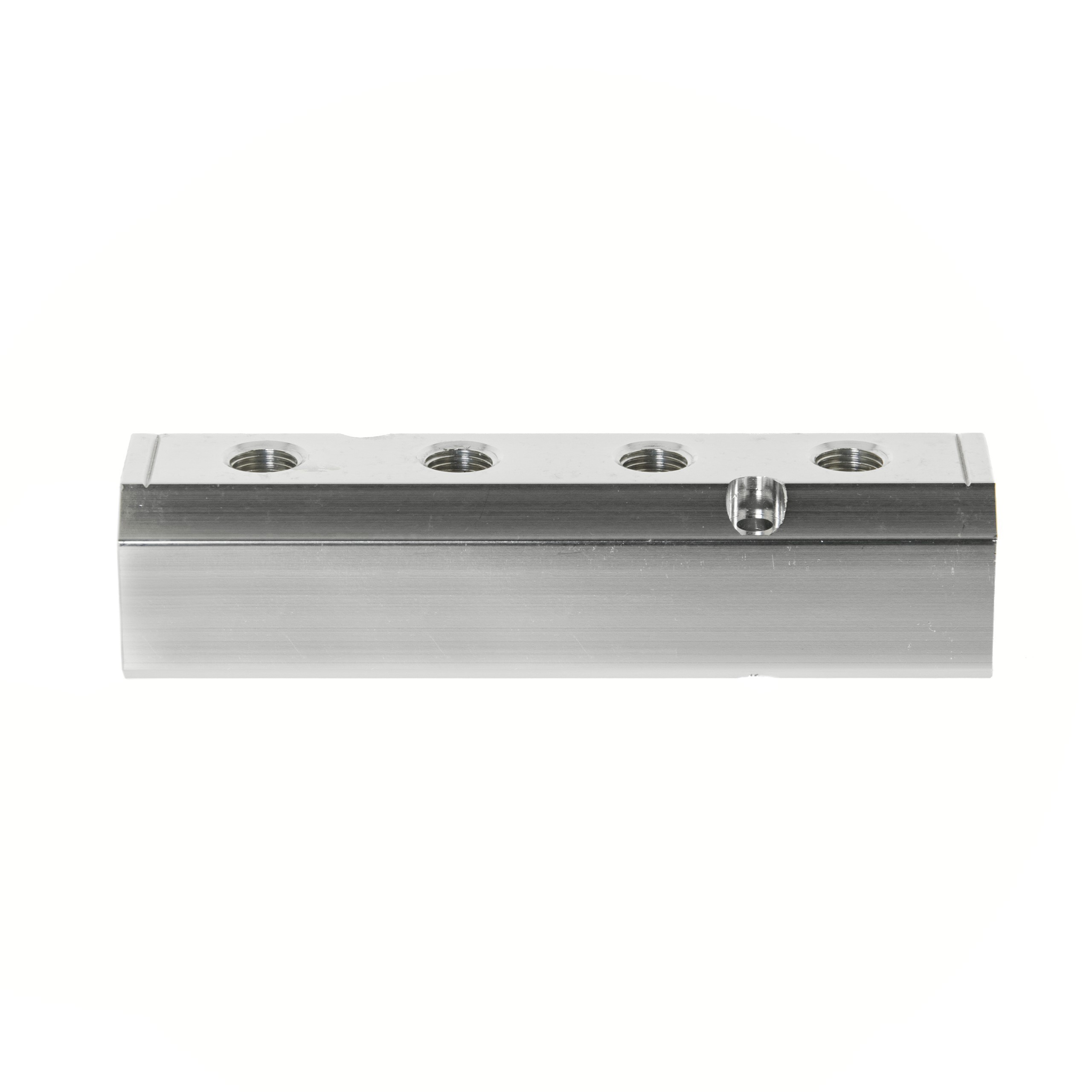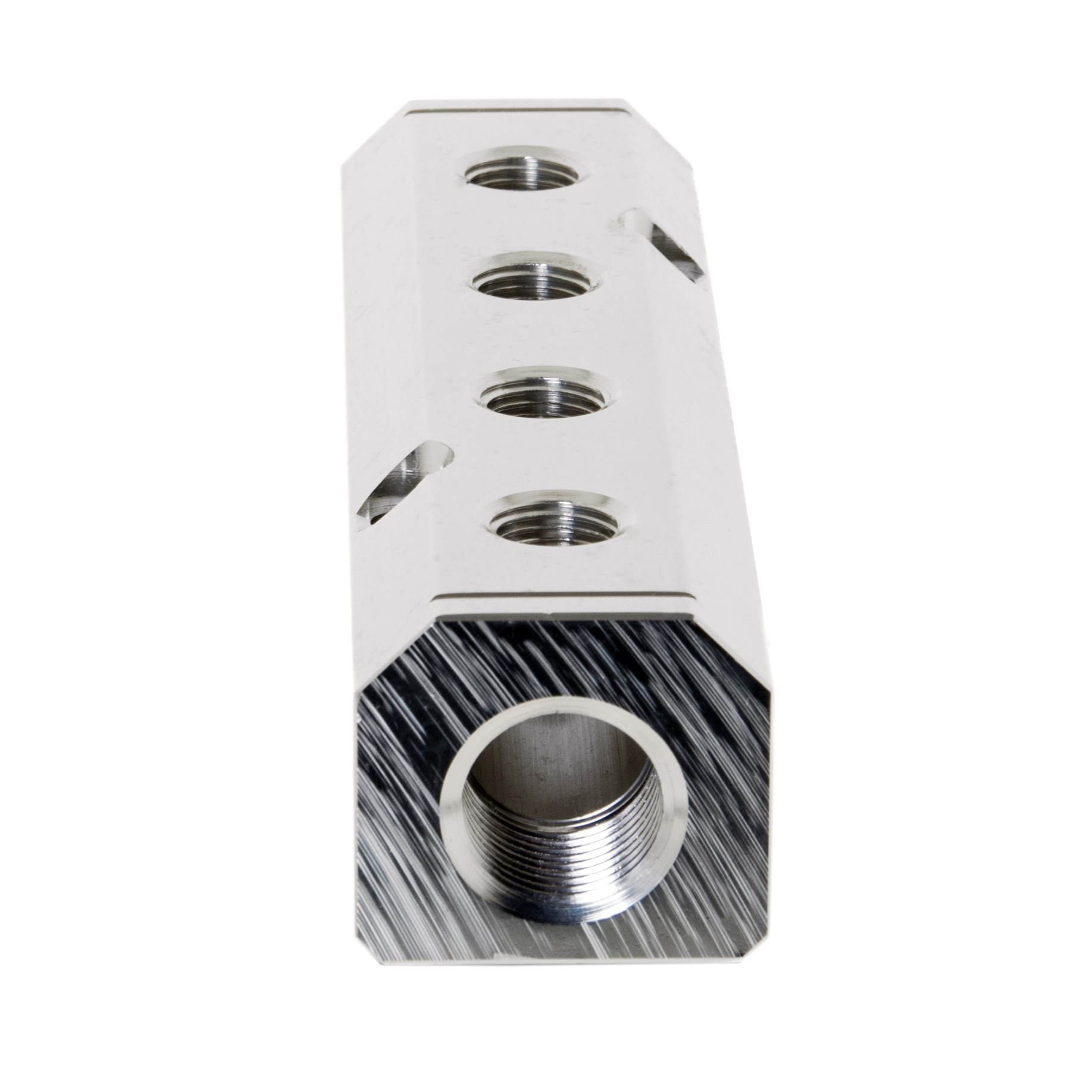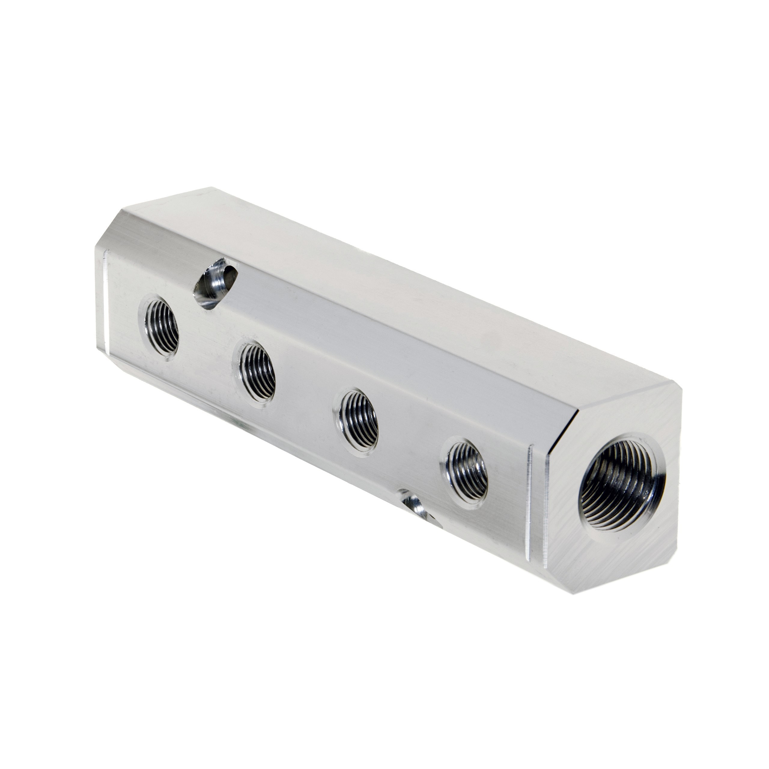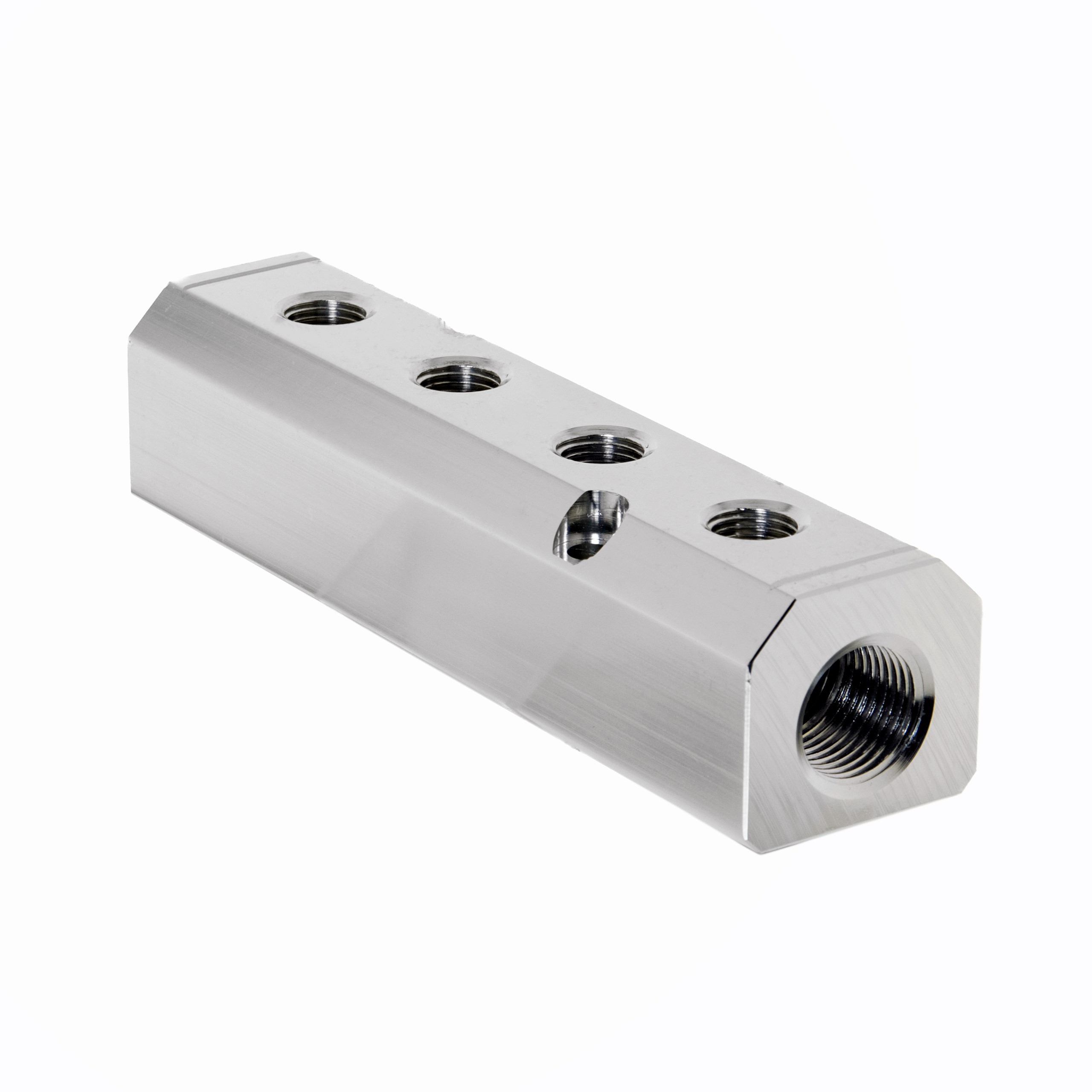 Listwa rozdzielająca MAGNUM do sprężonego powietrza lub wody wykonana z polerowanego aluminium.