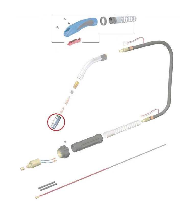 Dysza kompatybilna z uchwytem spawalniczym MIG/MAG typu MB 25 oraz jego odpowiednikami.