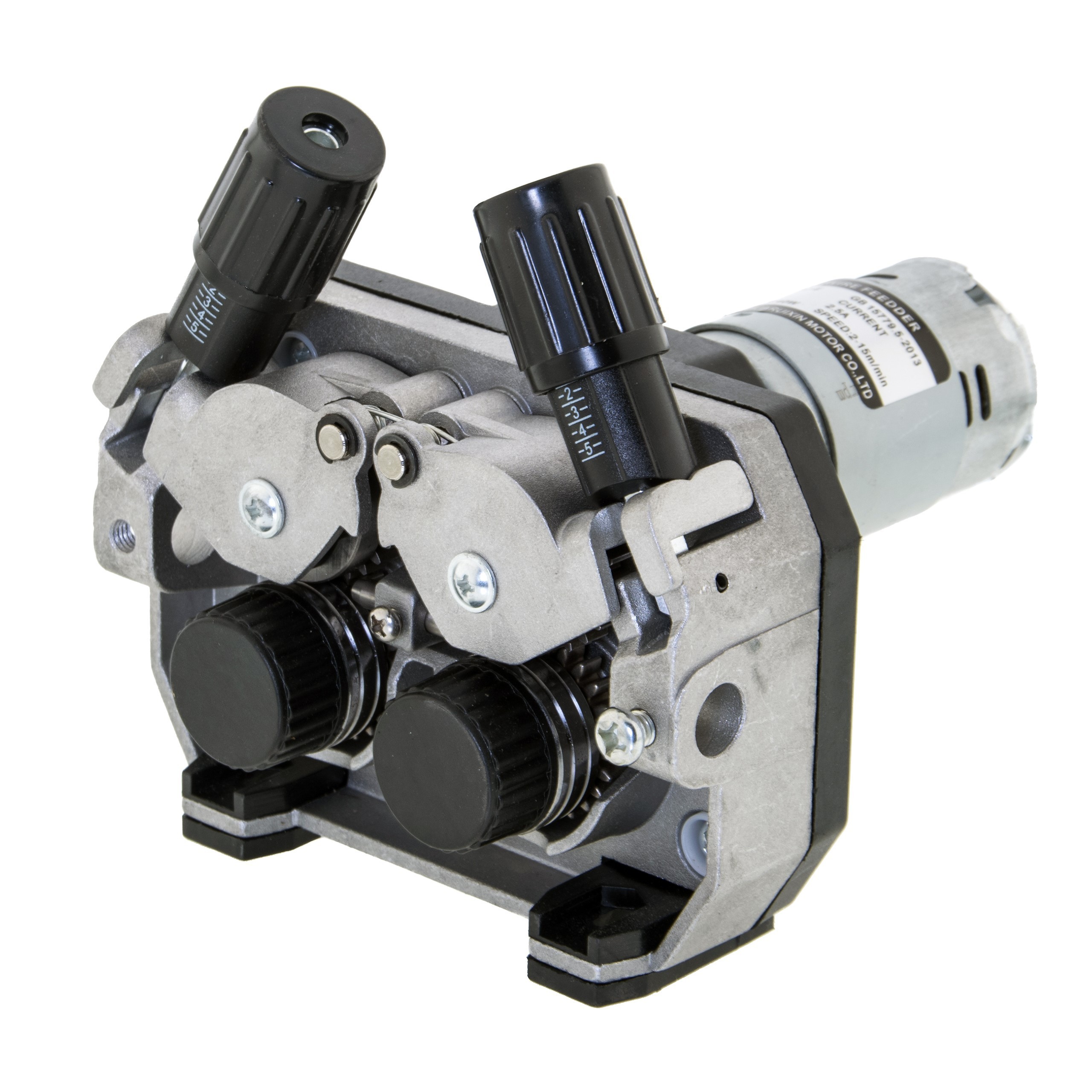 Podajnik wykonany jest z ciśnieniowo odlewanego aluminium co znaczenie wydłuża jego żywotność. Wyposażony jest w cztery rolki napędzane kołami zębatymi. Podajnik posiada zamontowany silnik po prawej stronie patrząc od rolek prowadzących.
