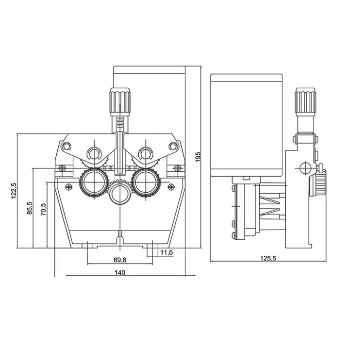 Podajnik wykonany jest z ciśnieniowo odlewanego aluminium co znaczenie wydłuża jego żywotność. Wyposażony jest w cztery rolki napędzane kołami zębatymi. Podajnik posiada zamontowany silnik po lewej stronie patrząc od rolek prowadzących.
