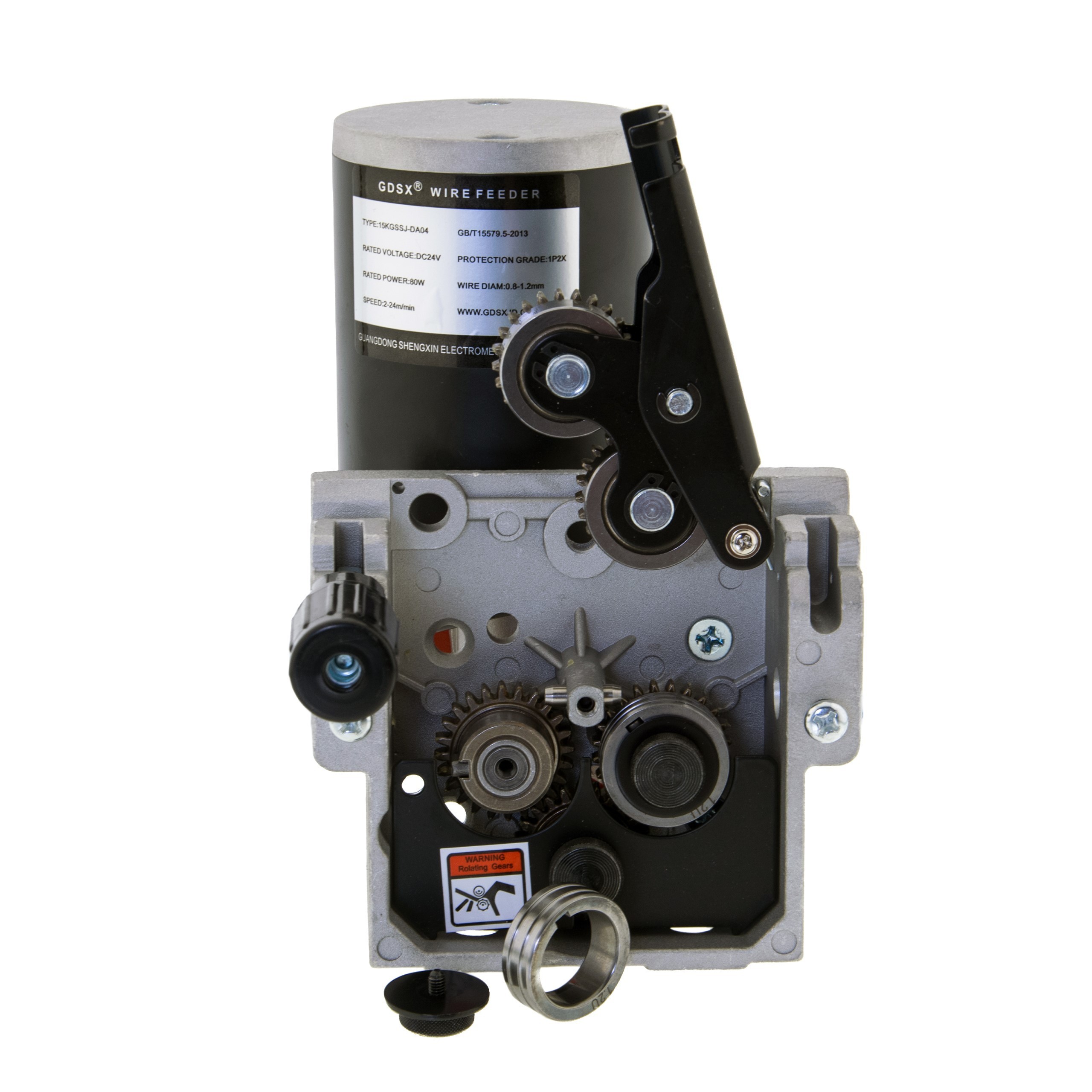 Podajnik wykonany jest z ciśnieniowo odlewanego aluminium co znaczenie wydłuża jego żywotność. Wyposażony jest w cztery rolki napędzane kołami zębatymi. Podajnik posiada zamontowany silnik po lewej stronie patrząc od rolek prowadzących.