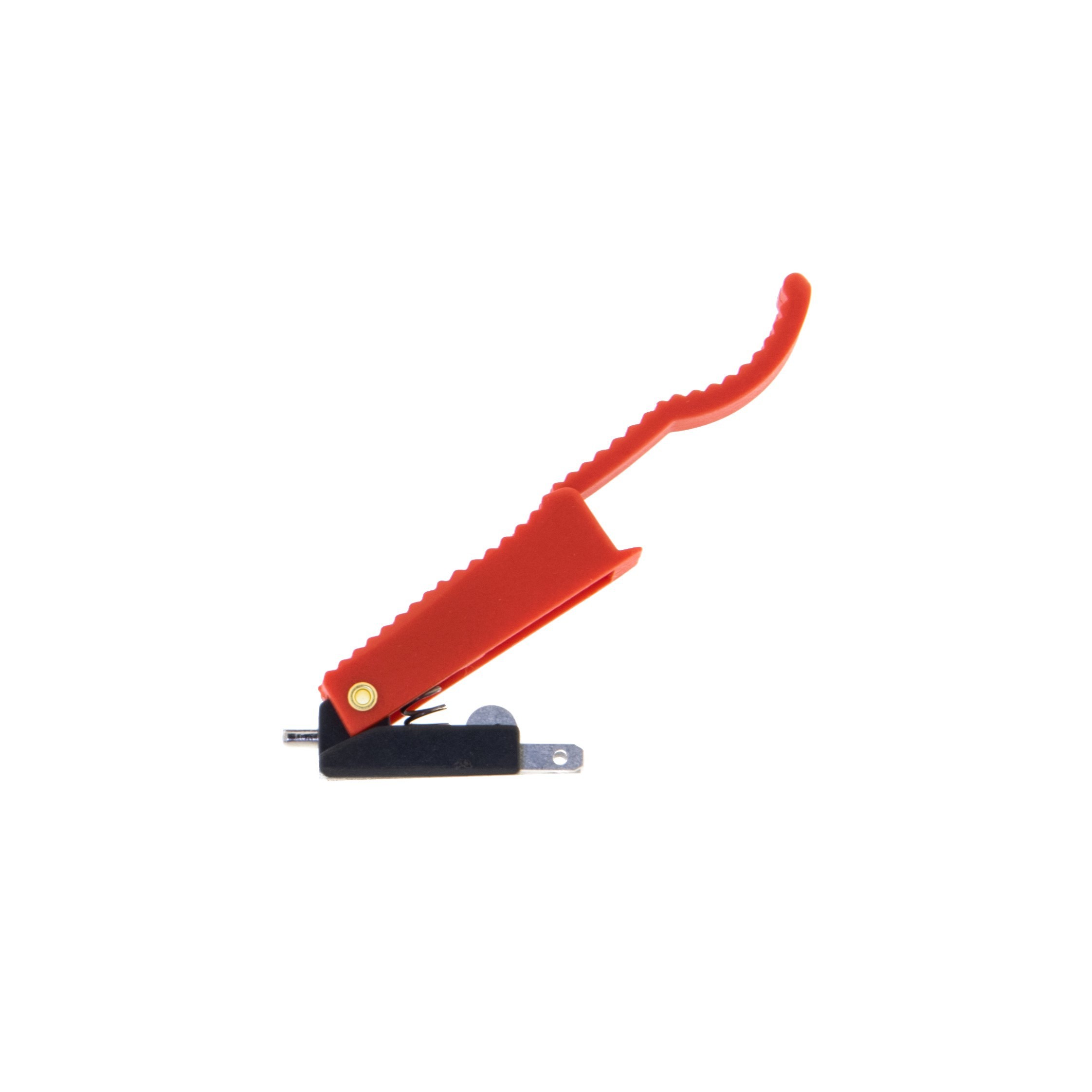 Uniwersalny karbowany przycisk z języczkiem do uchwytów MIG. Przycisk, włącznik wykonany w wysokim standardzie, pasuje do uchwytów: MB15, MB24, MB25, MB36, MB501.
