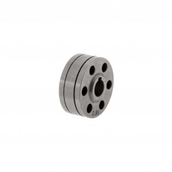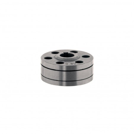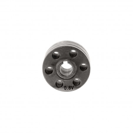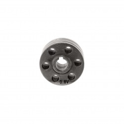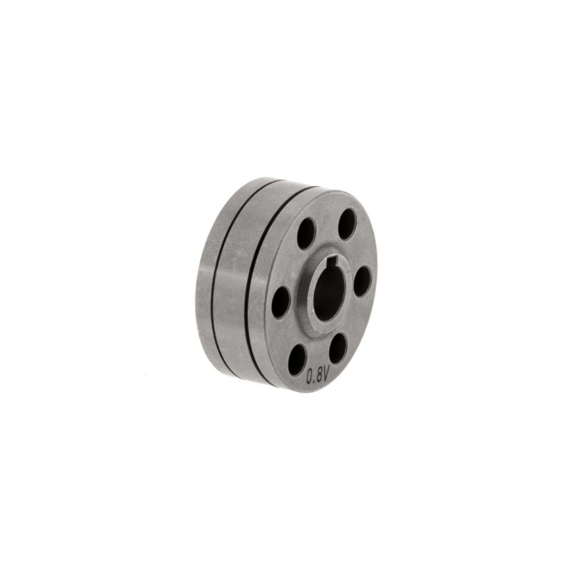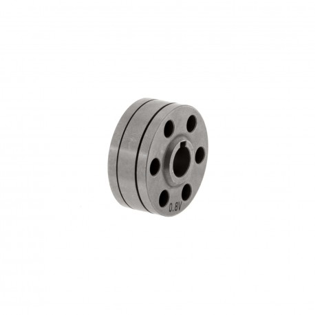 Rolka podajnika V-kształtna do stali średnica drutu 0,6 / 0.8 mm stosowana między innymi w urządzeniach spawalniczych MAGNUM MIG 221DP ora w podajnikach do spawarek laserowych. Otwór centralny z klinem oraz 6 otworów napędowych.