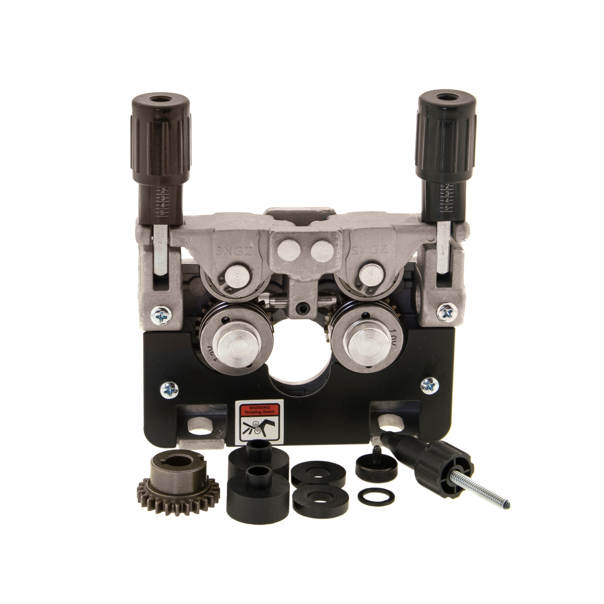 Podajnik wykonany jest z ciśnieniowo odlewanego aluminium co znaczenie wydłuża jego żywotność. Wyposażony jest w cztery rolki napędzane kołami zębatymi.