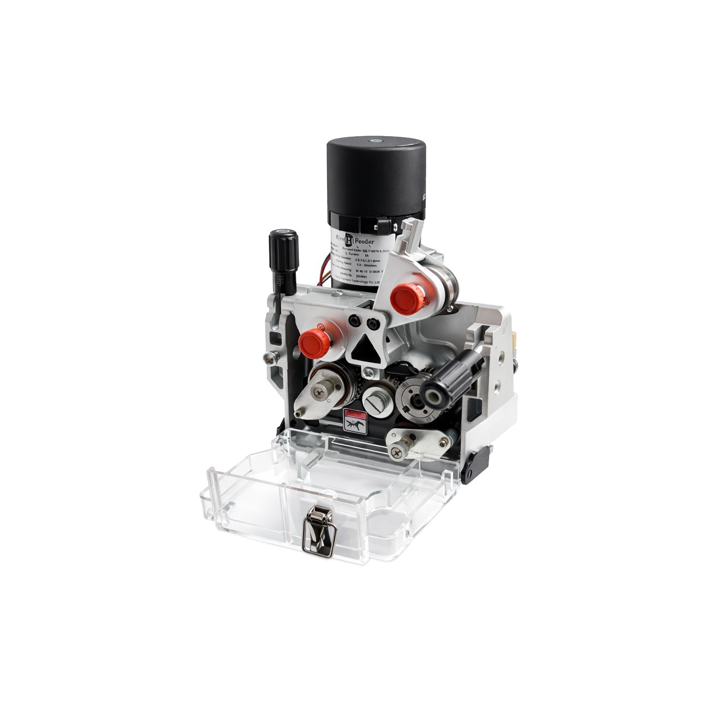 Podajnik wykonany jest z ciśnieniowo odlewanego aluminium co znaczenie wydłuża jego żywotność. Wyposażony jest w cztery rolki napędzane kołami zębatymi. Podajnik posiada zamontowany silnik po lewej stronie patrząc od rolek prowadzących.