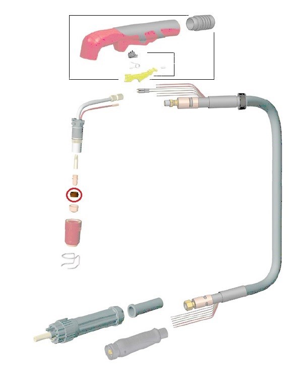 Rozdzielacz gazu (pierścień zawirowujący PE0101 ) do uchwytów plazmowych A-101/A-141. Stosowany w przecinarkach plazmowych z uchwytem A-101/A-141.