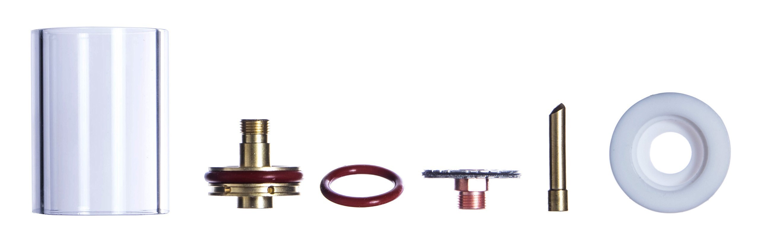Zestaw ten pozwala na wysunięcie elektrody wolframowej do 2 "(50,8 mm), umożliwia spawaczom spawanie tytanu o niskim natężeniu prądu bez tylnej osłony. Idealne do spawania sczepnego poza obojętną komorą i naprawy małych pęknięć.