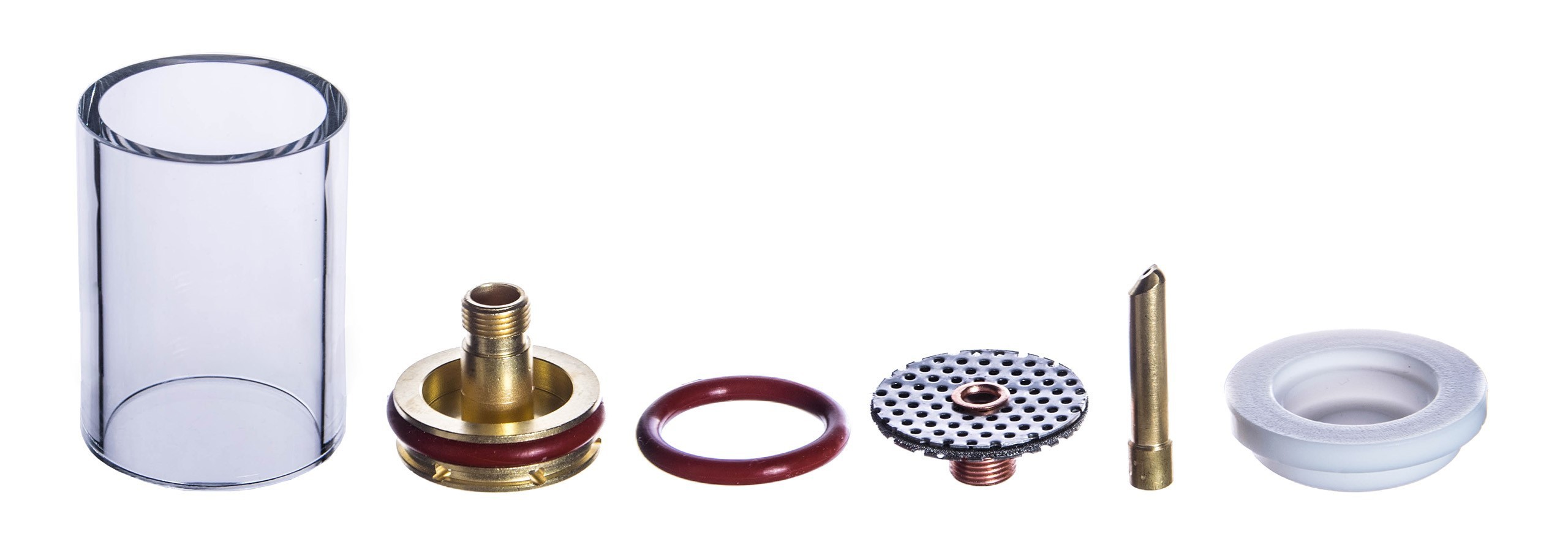 Zestaw ten pozwala na wysunięcie elektrody wolframowej do 2 "(50,8 mm), umożliwia spawaczom spawanie tytanu o niskim natężeniu prądu bez tylnej osłony. Idealne do spawania sczepnego poza obojętną komorą i naprawy małych pęknięć.