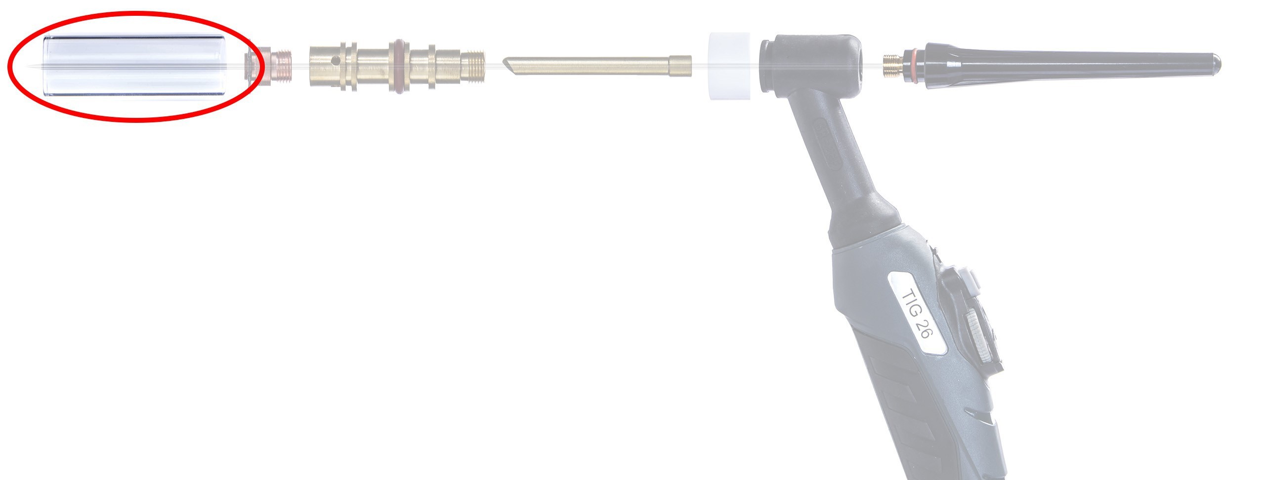 Przezroczysta dysza do systemu QUARTZ wykonana ze szkła kwarcowego pozwala na dobrą widoczność jeziorka spawalniczego przede wszystkim w miejscach, w których widoczność jest ograniczona.