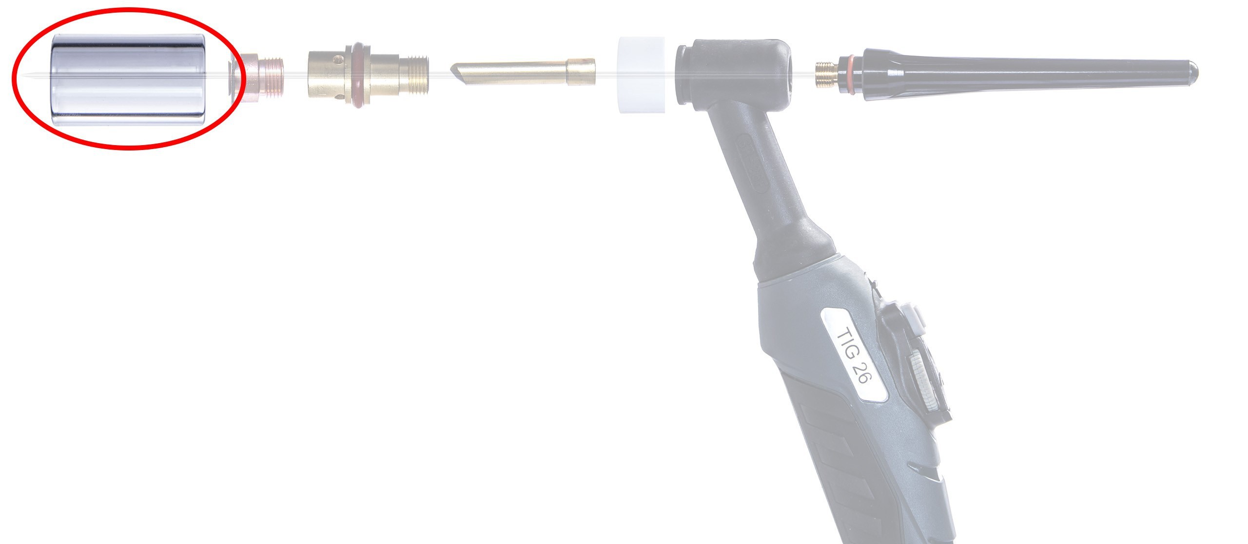 Przezroczysta dysza do systemu QUARTZ wykonana ze szkła kwarcowego pozwala na dobrą widoczność jeziorka spawalniczego przede wszystkim w miejscach, w których widoczność jest ograniczona.