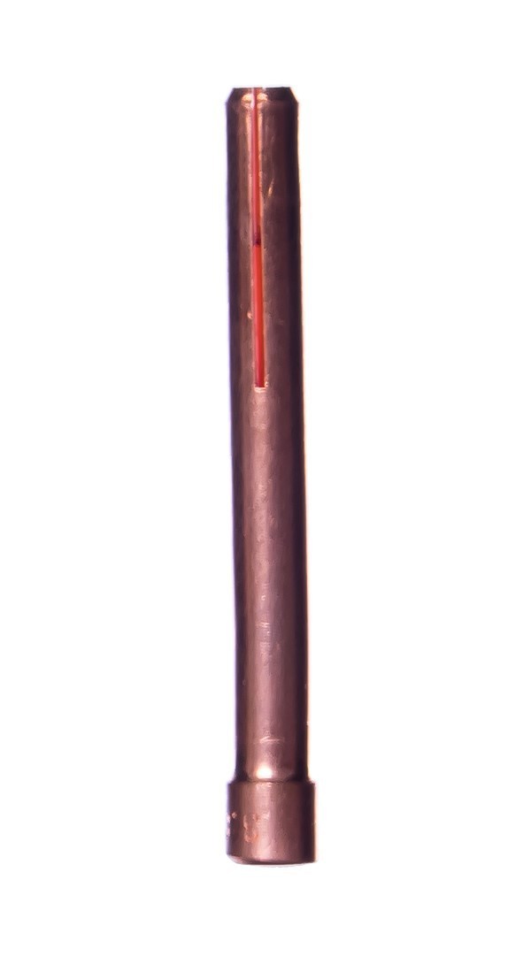 Tuleja zaciskowa do palnika TIG, pod elektrodę wolframową o średnicy 4,0 mm. Przeznaczona do mocowania elektrody wolframowej w gnieździe palnika. Tulejka odpowiednia do uchwytów spawalniczych chłodzonych gazem oraz cieczą.