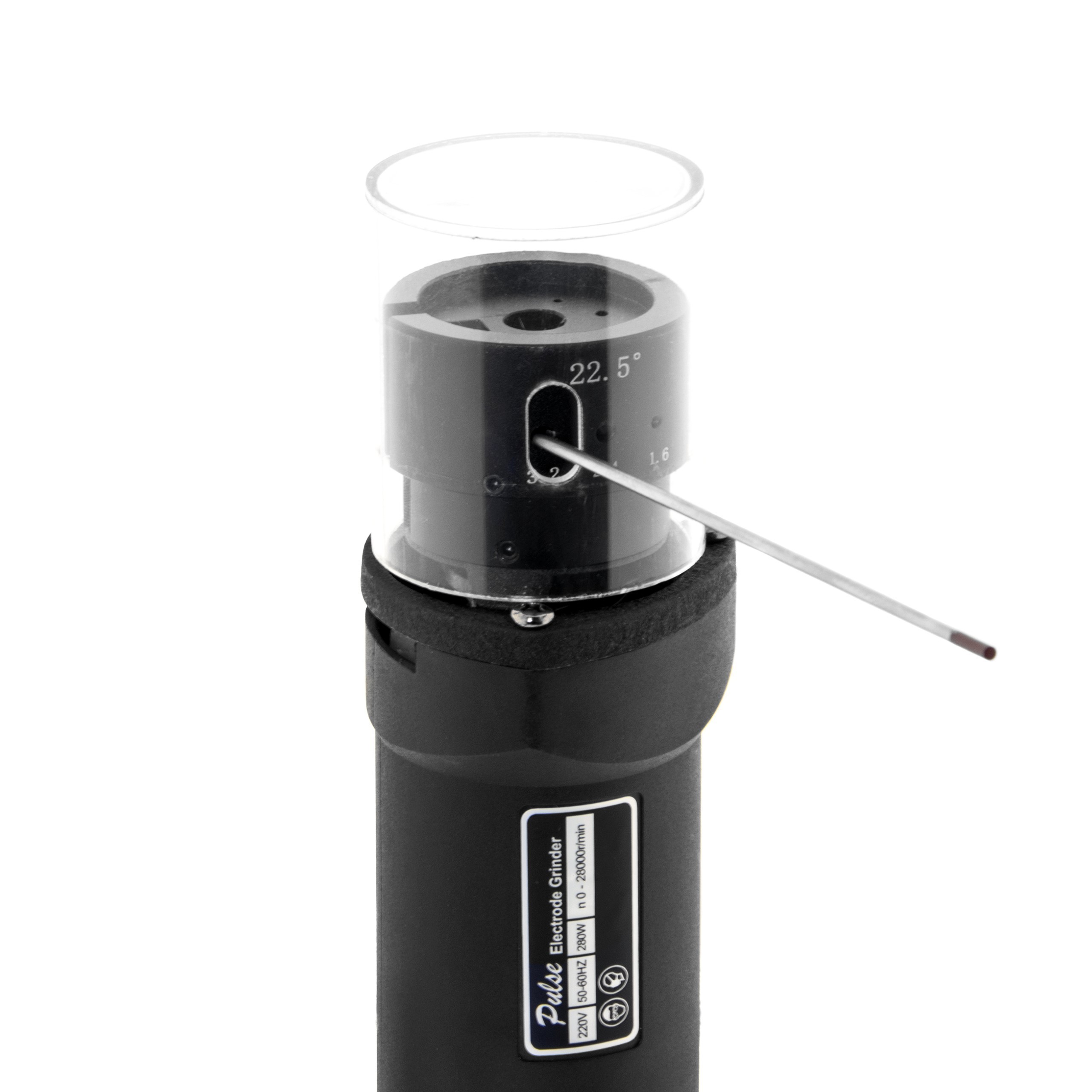 Ostrzenie urządzeniem całkowicie eliminuje problemy ze stabilnością łuku elektrycznego podczas spawania, które wynikają z niewłaściwie zaostrzonej elektrody na przykład na szlifierce tradycyjnej. Elektrody ostrzy się w specjalnej zamkniętej głowicy bez dodatkowych narzędzi i uchwytów. Wielofunkcyjna głowica zapewnia ostrzenie elektrod pod dwoma kątami 22.5 oraz 30 stopni, spłaszczenie oraz cięcie elektrod na dowolną długość.