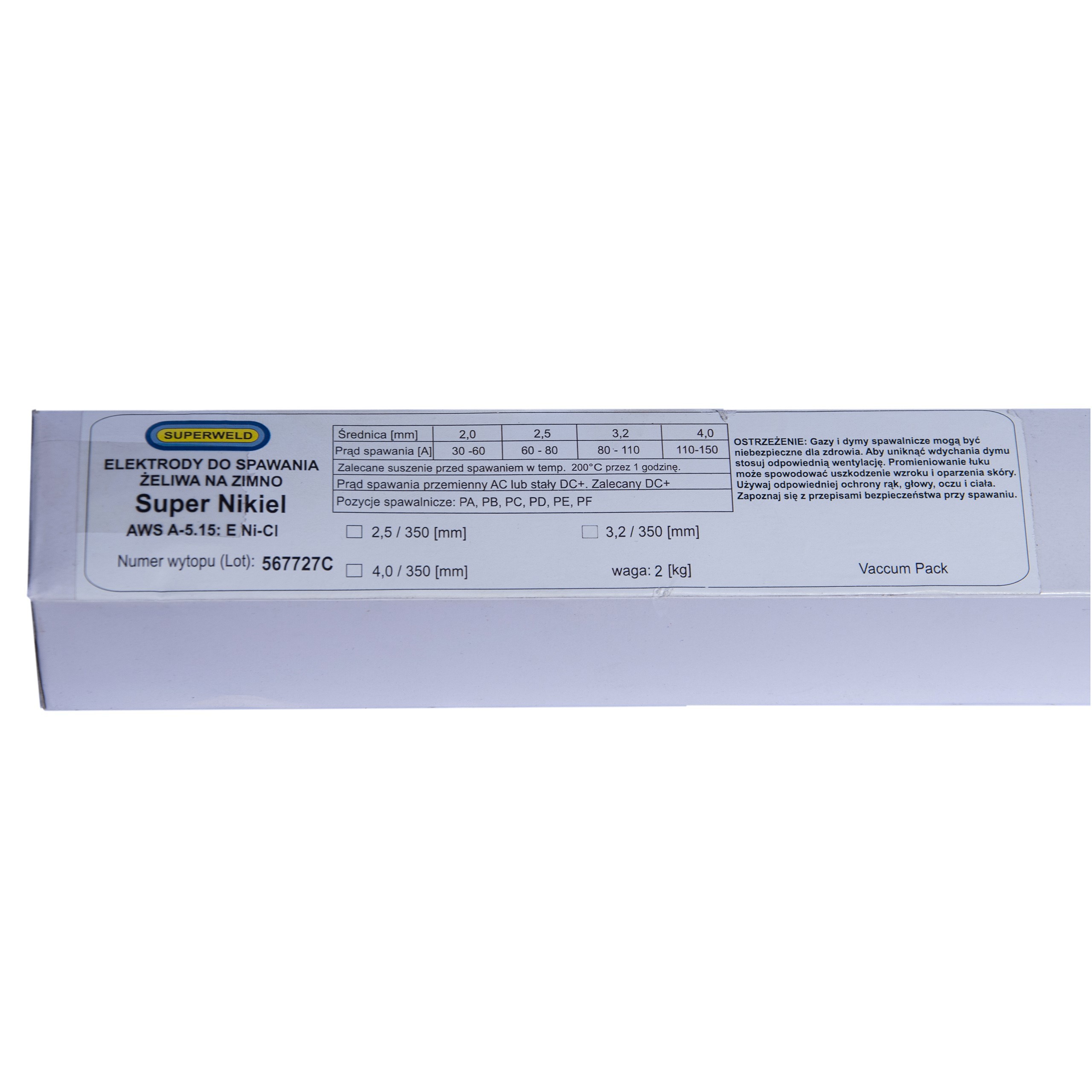 Elektroda do żeliwa Ni-Cl Ø 2.5x350 2kg SUPERWELD