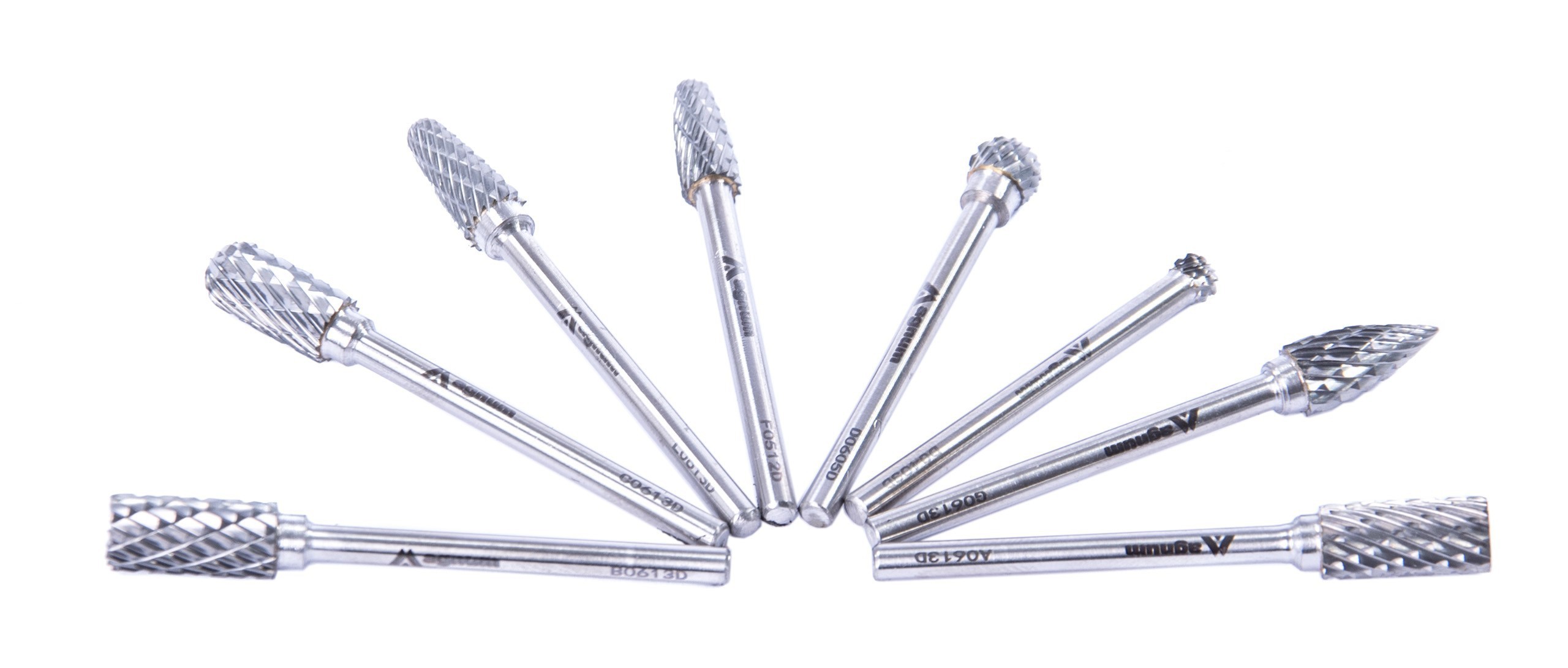 Zestaw pilników do metalu MAGNUM z węglika spiekanego VHM. Frezy ze stali szybkotnącej są zwykle używane do obróbki miękkiej stali, aluminium, brązu, mosiądzu itp. Wszystkie frezy posiadają średnicę chwytu 3 mm.