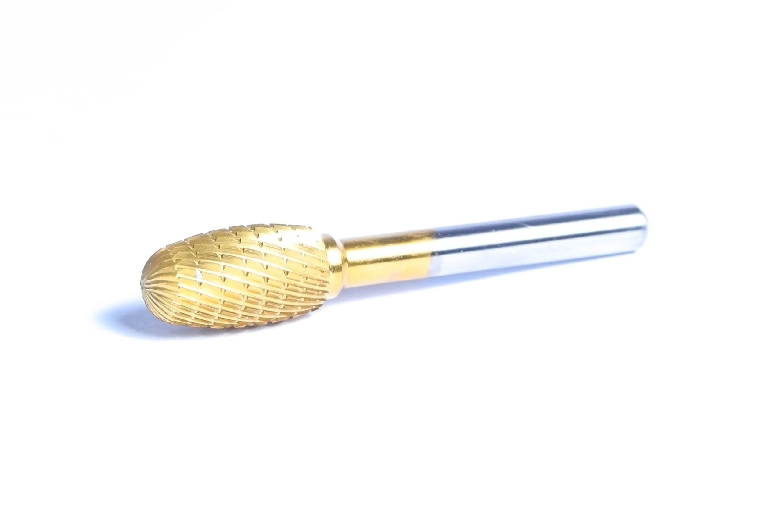 Pilnik obrotowy do metalu z węglika spiekanego VHM pokrytego powłoką azotku tytanu (TiN).