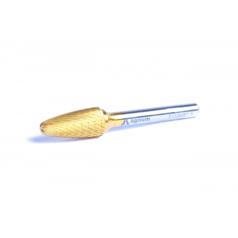 Pilnik obrotowy do metalu z węglika spiekanego VHM pokrytego powłoką azotku tytanu (TiN).