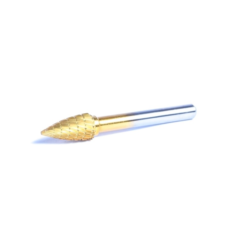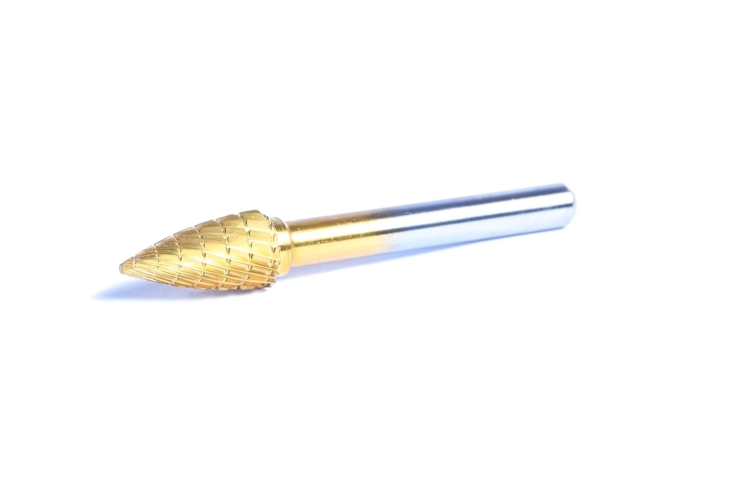 Pilnik obrotowy do metalu z węglika spiekanego VHM pokrytego powłoką azotku tytanu (TiN).
