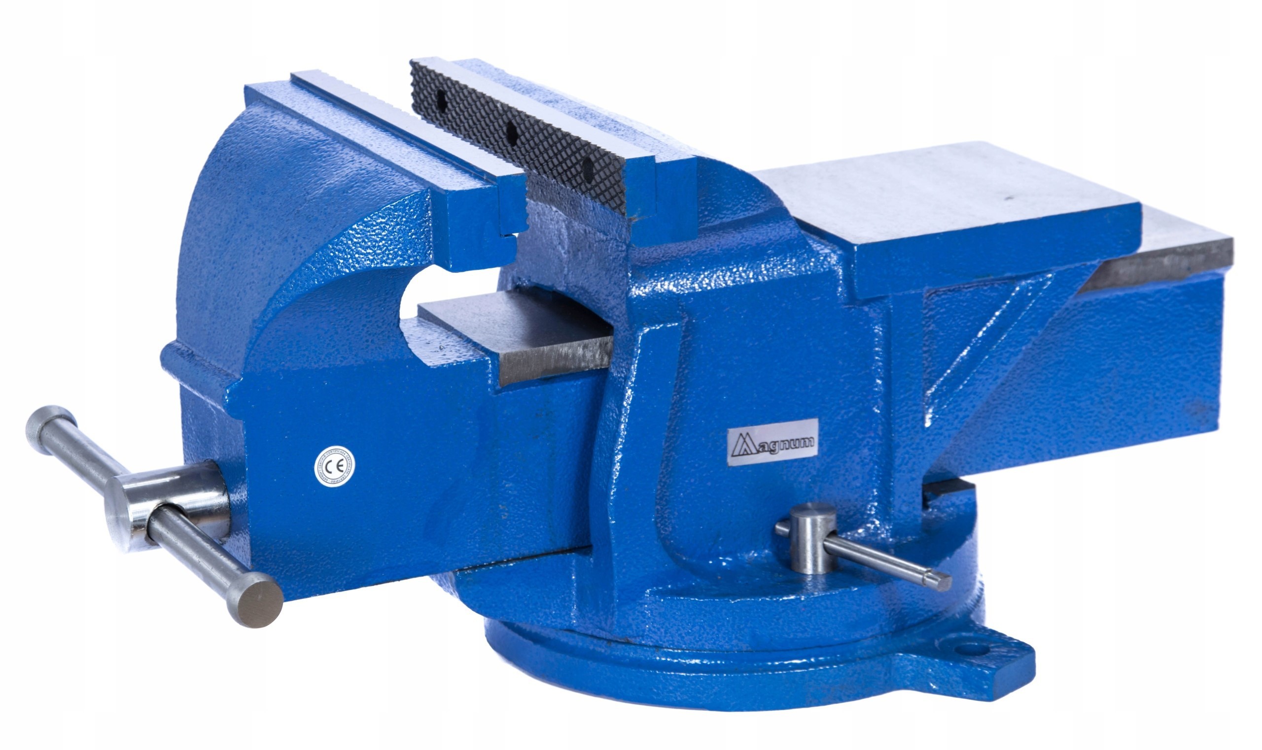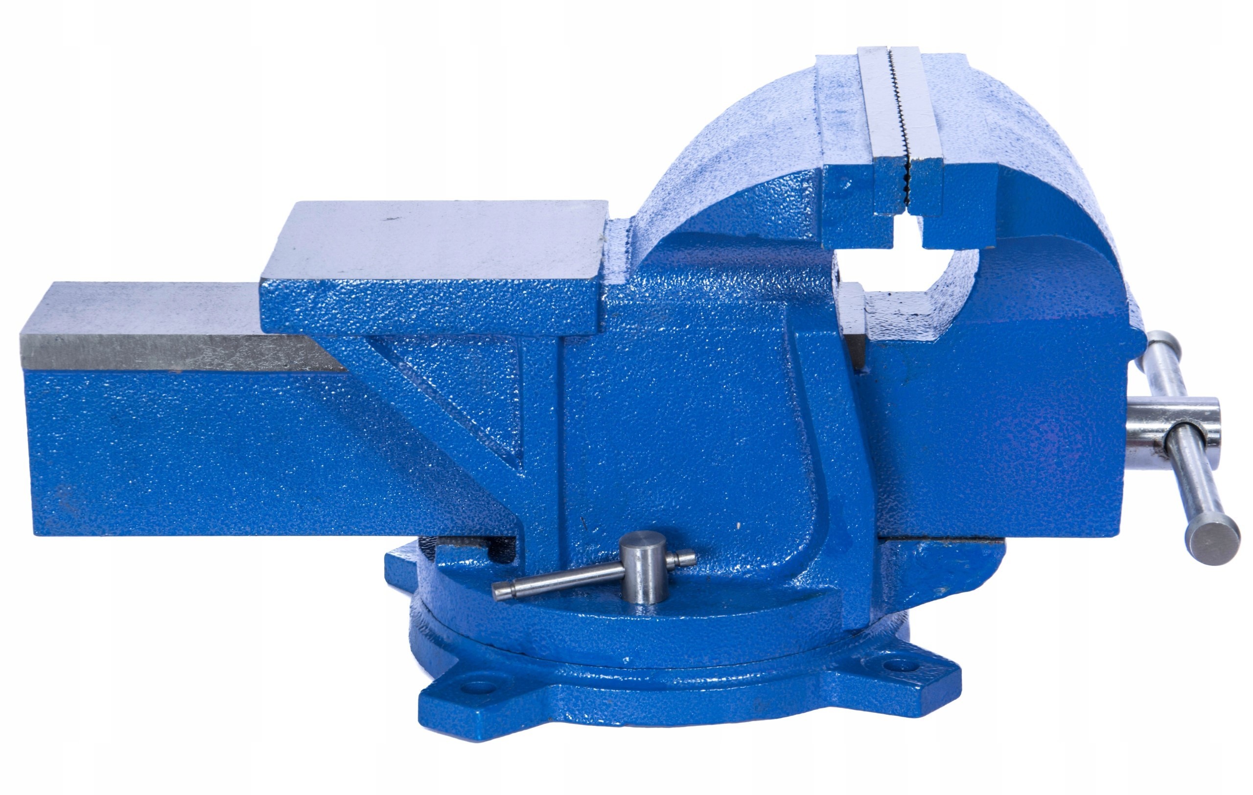 Solidne imadło ślusarskie na obrotowej podstawie. Korpus odlany z dużą starannością, posiada kowadło przydatne do kształtowania przedmiotów. Wytrzymała i sztywna konstrukcja imadła zapewnia przenoszenie dużych obciążeń oraz dobre tłumienie drgań. Solidne, wykonane z wysokiej jakości stali szczęki imadła z nacięciem krzyżowym gwarantuje pewne mocowanie obrabianego przedmiotu.