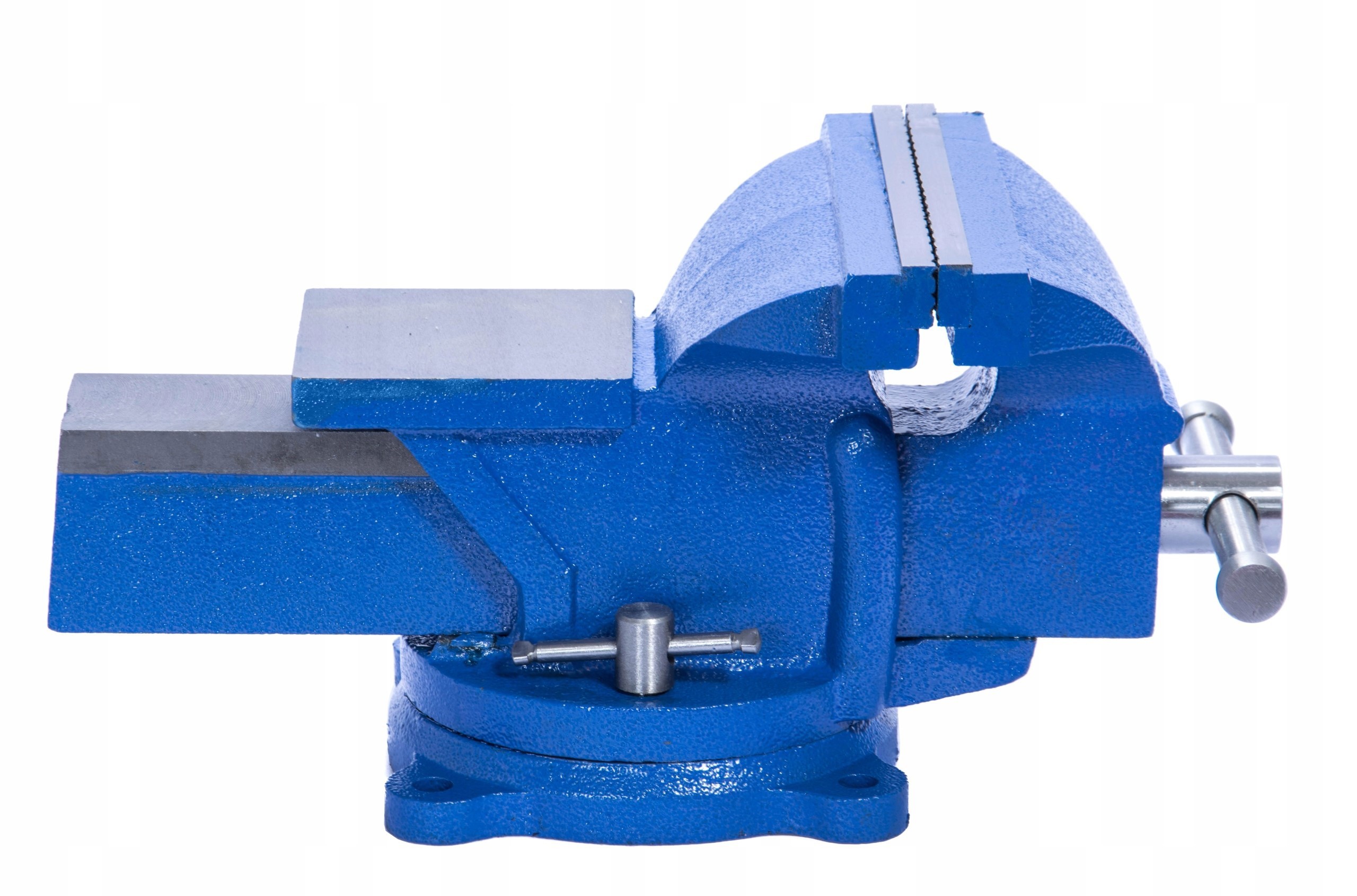 Solidne imadło ślusarskie na obrotowej podstawie. Korpus odlany z dużą starannością, posiada również kowadło przydatne do kształtowania przedmiotów. Wytrzymała i sztywna konstrukcja imadła zapewnia przenoszenie dużych obciążeń oraz dobre tłumienie drgań. Solidne, wykonane z wysokiej jakości stali szczęki imadła z nacięciem krzyżowy gwarantują pewne mocowanie obrabianego przedmiotu.