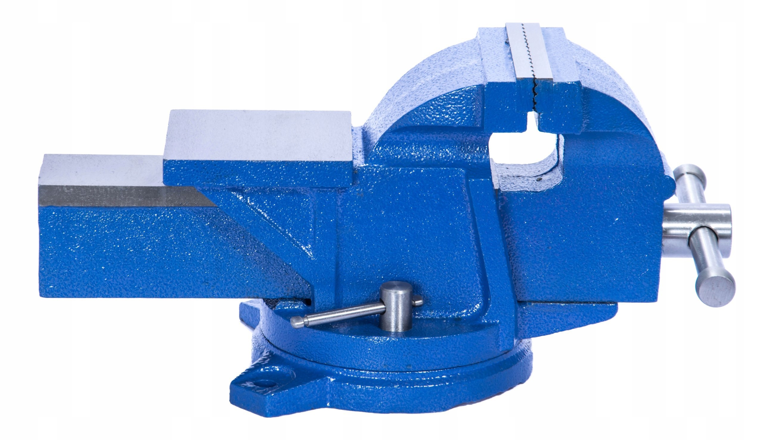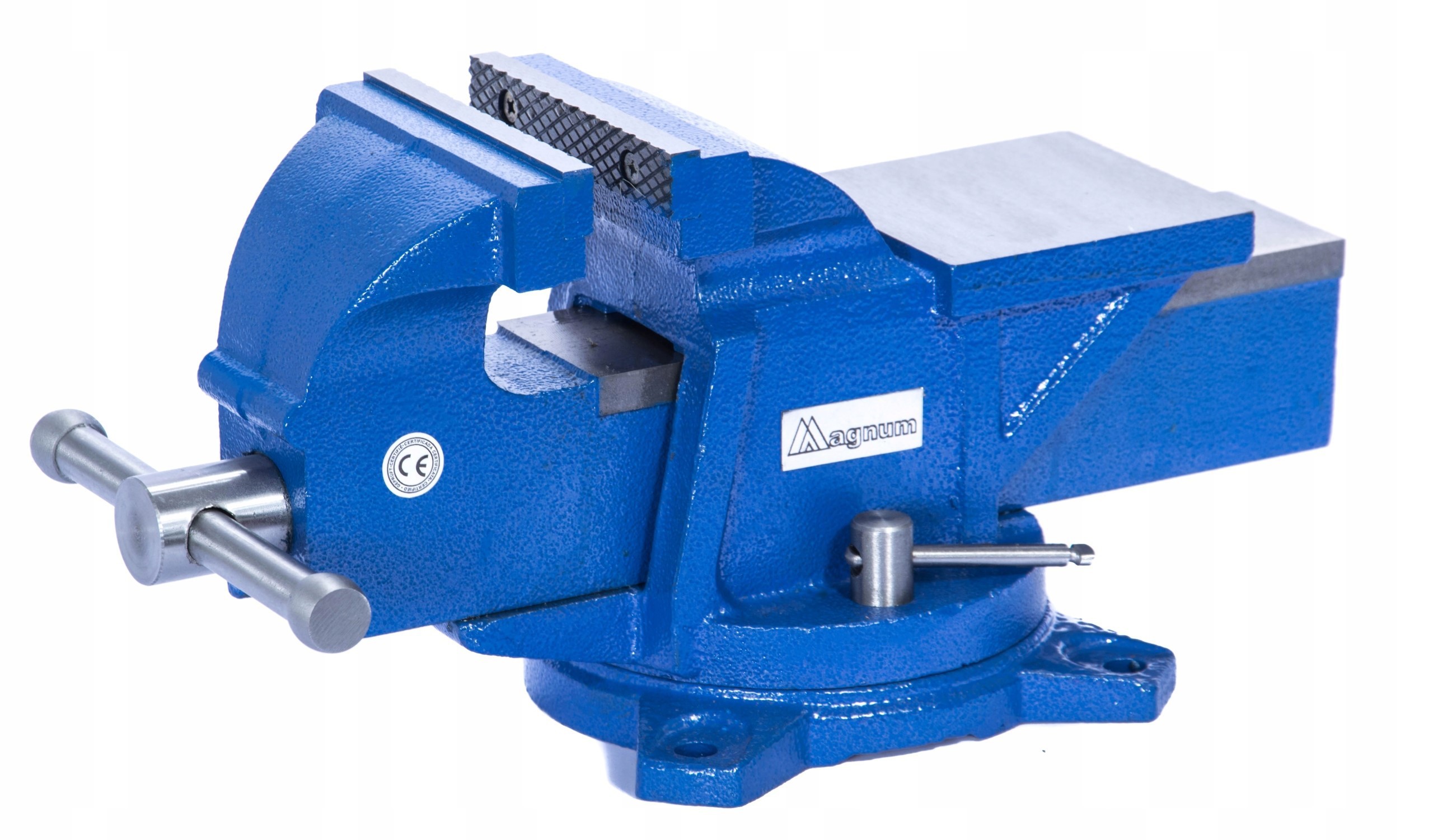 Solidne imadło ślusarskie na obrotowej podstawie. Korpus odlany z dużą starannością, posiada kowadło przydatne do kształtowania przedmiotów. Wytrzymała i sztywna konstrukcja imadła zapewnia przenoszenie dużych obciążeń oraz dobre tłumienie drgań. Solidne, wykonane z wysokiej jakości stali szczęki imadła z nacięciem krzyżowym gwarantuje pewne mocowanie obrabianego przedmiotu.