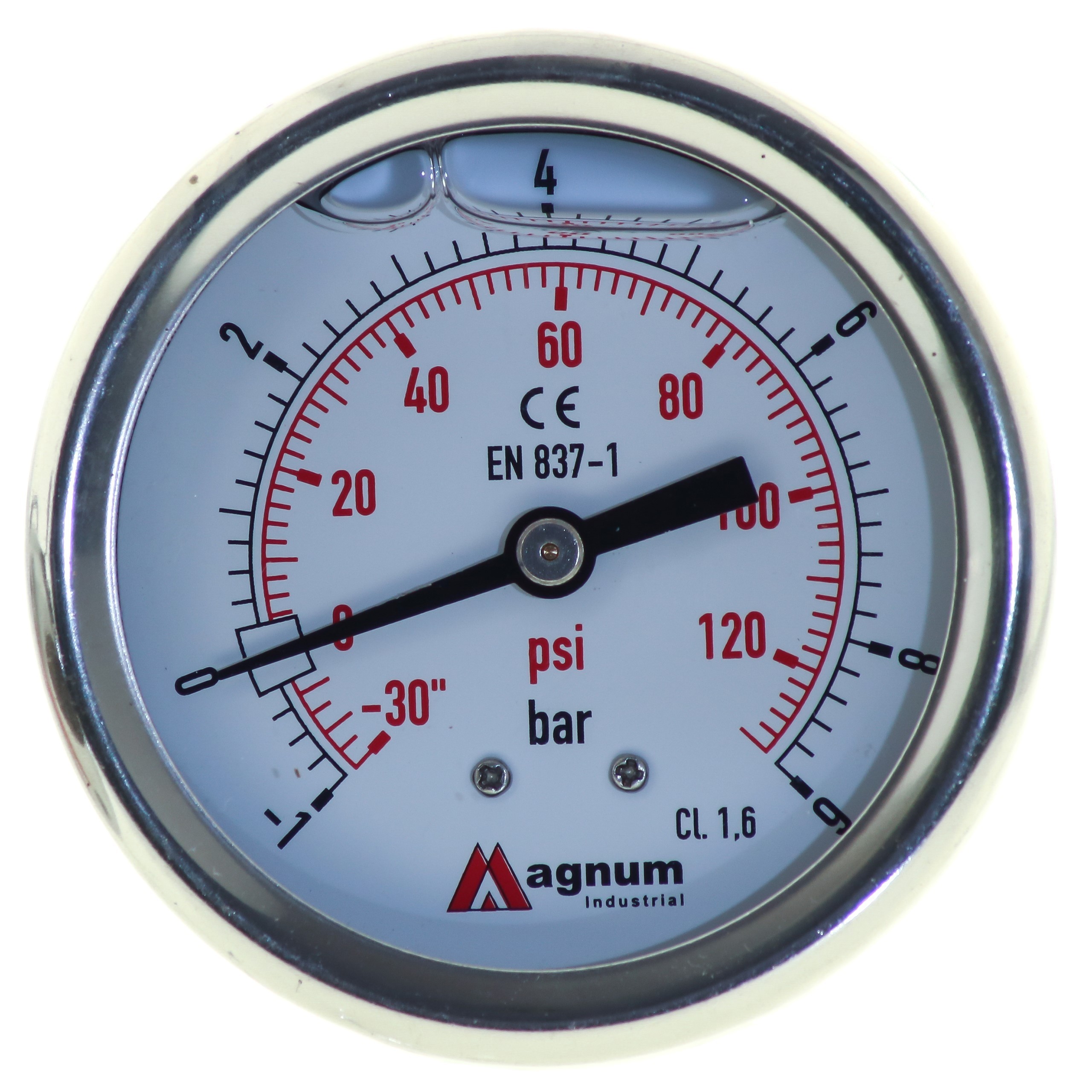 Wysokiej klasy manowakuometr z rurką Bourdona marki MAGNUM wykonany zgodnie z normą EN 837-1 w klasie dokładności 1,6. Ciśnieniomierze ogólnego przeznaczenia do pomiarów podciśnienia i nadciśnienia gazów oraz cieczy chemicznie obojętnych na stopy miedzi które nie powodują zatorów w układach ciśnienia.