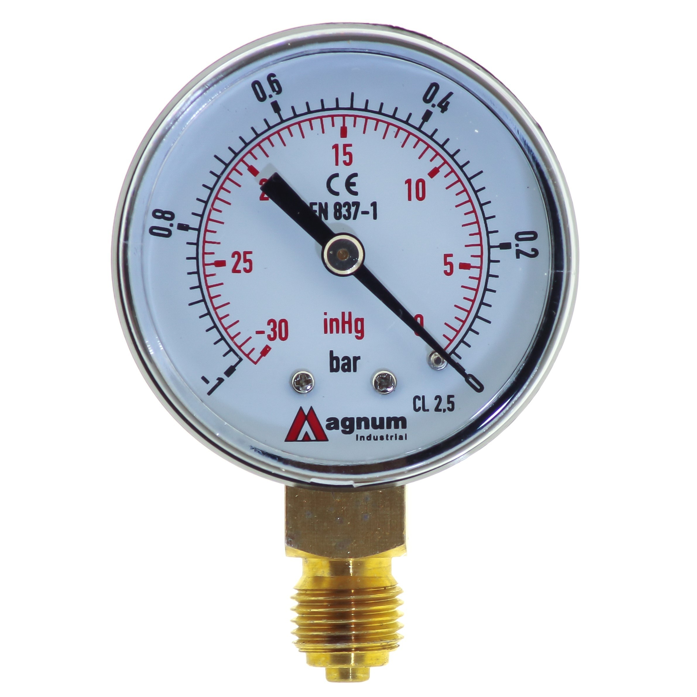 Wysokiej klasy wakuometr z rurką Bourdona marki MAGNUM wykonany zgodnie z normą EN 837-1 w klasie dokładności 2,5. Ciśnieniomierze ogólnego przeznaczenia do pomiarów podciśnienia gazów oraz cieczy chemicznie obojętnych na stopy miedzi które nie powodują zatorów w układach ciśnienia.