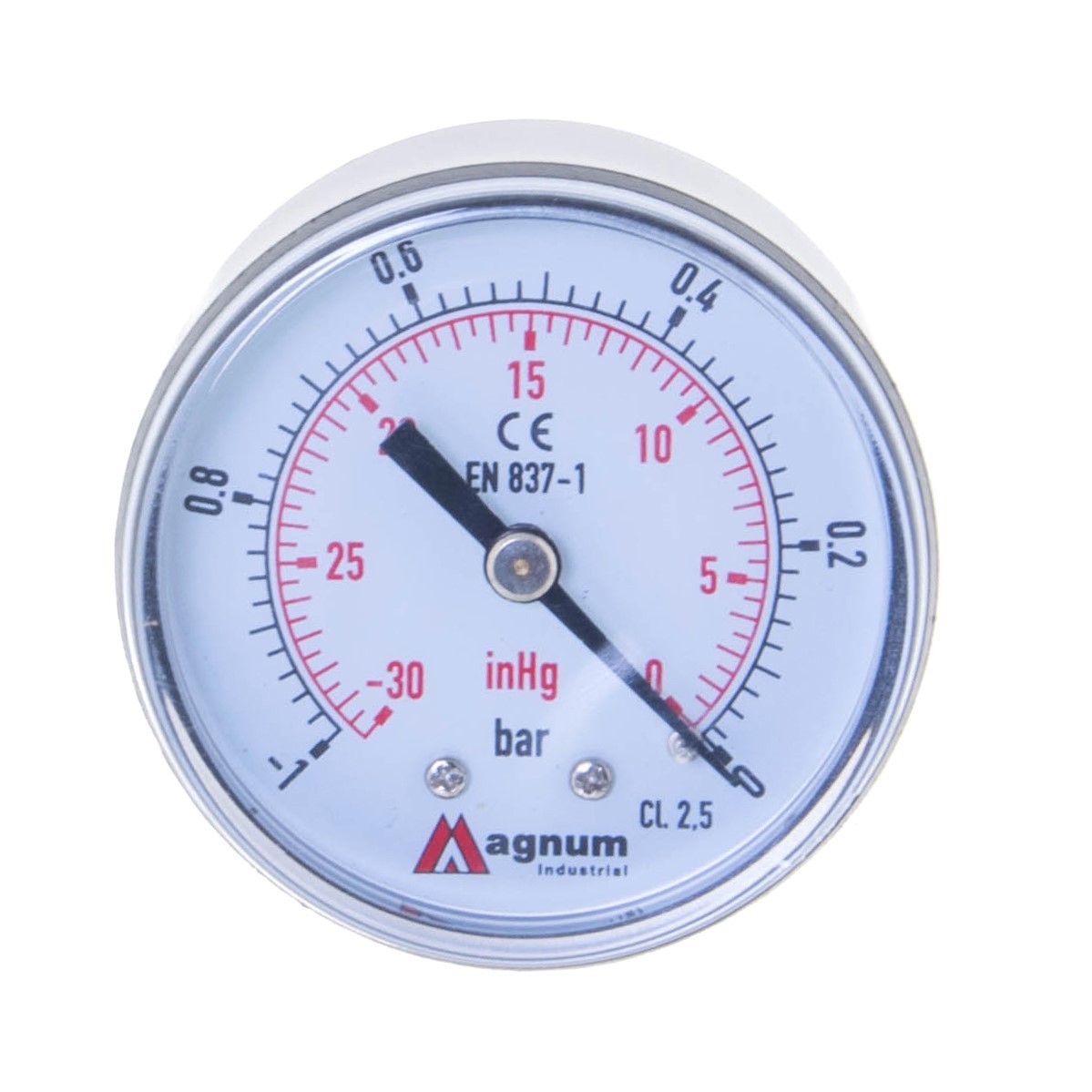 Wysokiej klasy wakuometr z rurką Bourdona marki MAGNUM wykonany zgodnie z normą EN 837-1 w klasie dokładności 2,5. Ciśnieniomierze ogólnego przeznaczenia do pomiarów podciśnienia gazów oraz cieczy chemicznie obojętnych na stopy miedzi które nie powodują zatorów w układach ciśnienia.