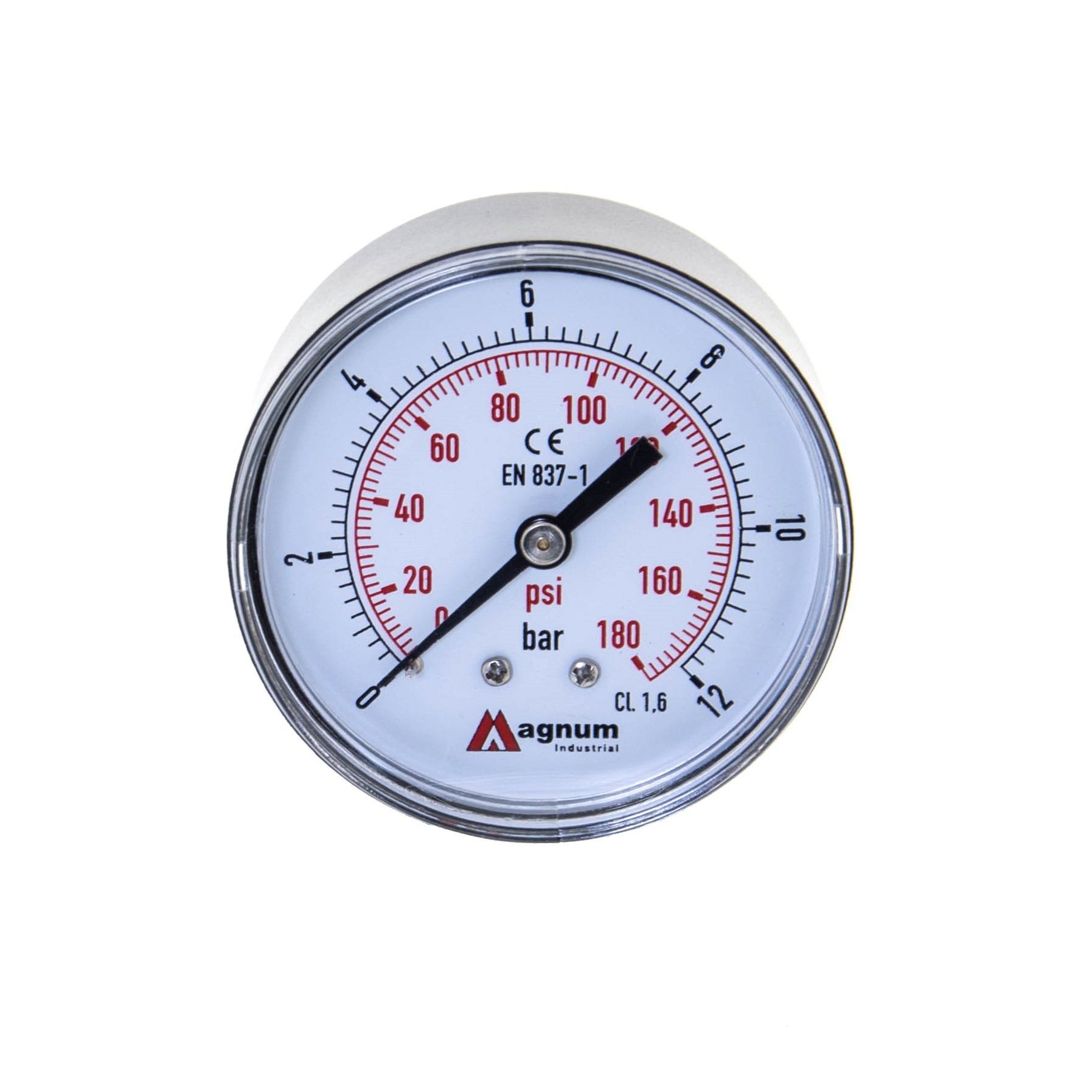 Wysokiej klasy manometr tablicowy z rurką Bourdona marki MAGNUM wykonany zgodnie z normą EN 837-1 w klasie dokładności 1,6. Ciśnieniomierze ogólnego przeznaczenia do pomiaru ciśnienia gazów i cieczy chemicznie obojętnych na stopy miedzi i nie powodujących zatorów w układach ciśnienia.