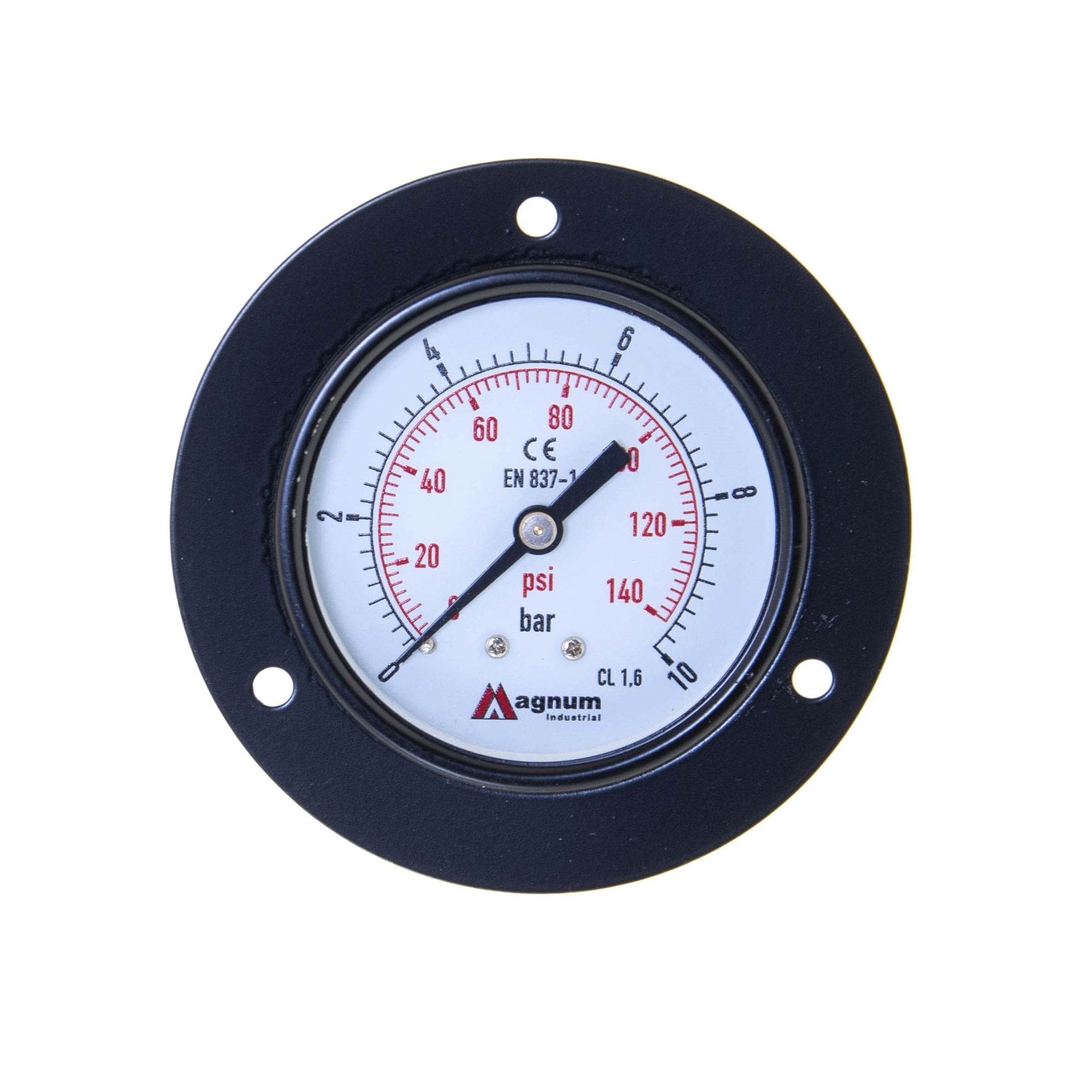 Wysokiej klasy manometr tablicowy z rurką Bourdona marki MAGNUM wykonany zgodnie z normą EN 837-1 w klasie dokładności 1,6. Ciśnieniomierze ogólnego przeznaczenia do pomiaru ciśnienia gazów i cieczy chemicznie obojętnych na stopy miedzi i nie powodujących zatorów w układach ciśnienia.