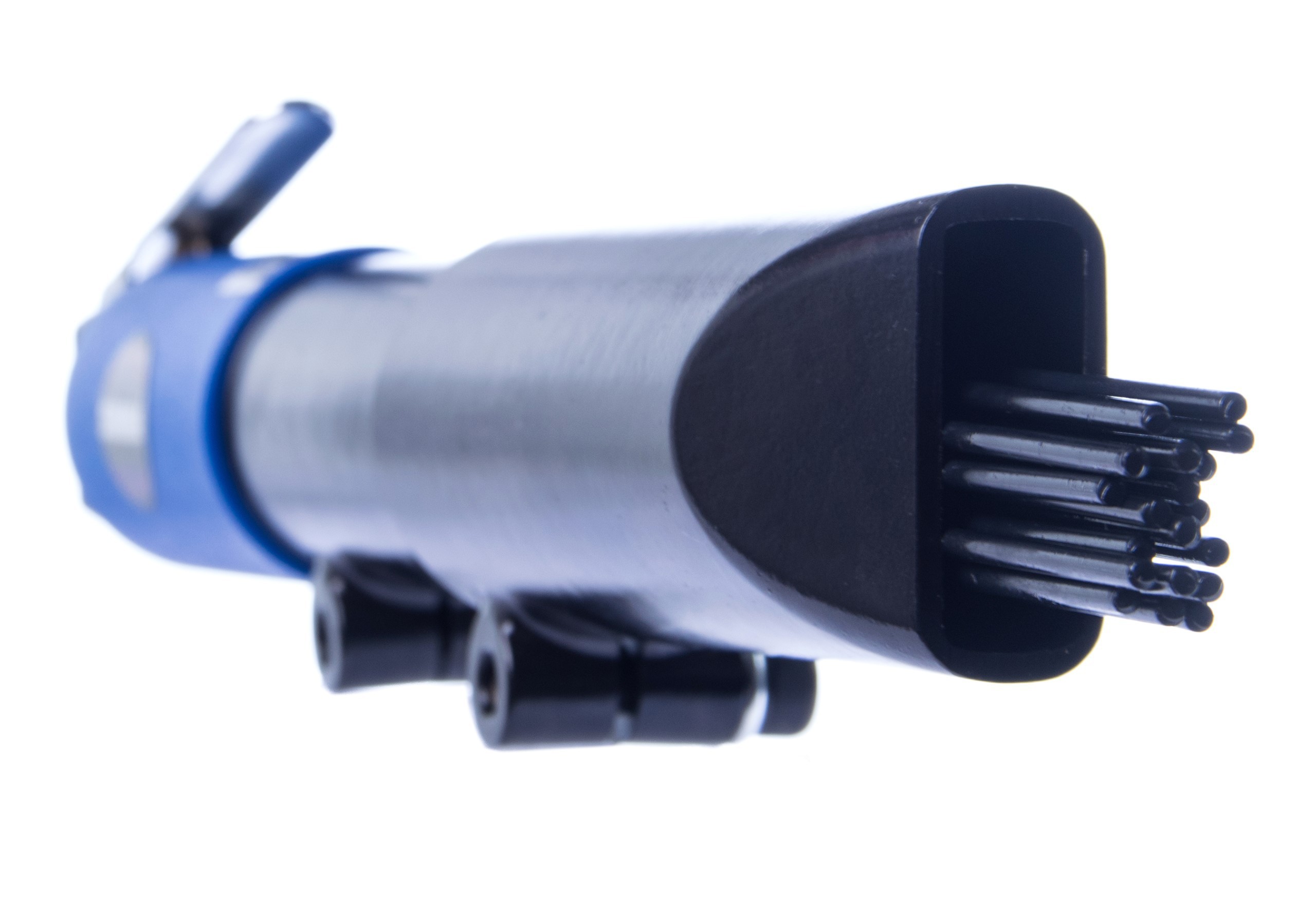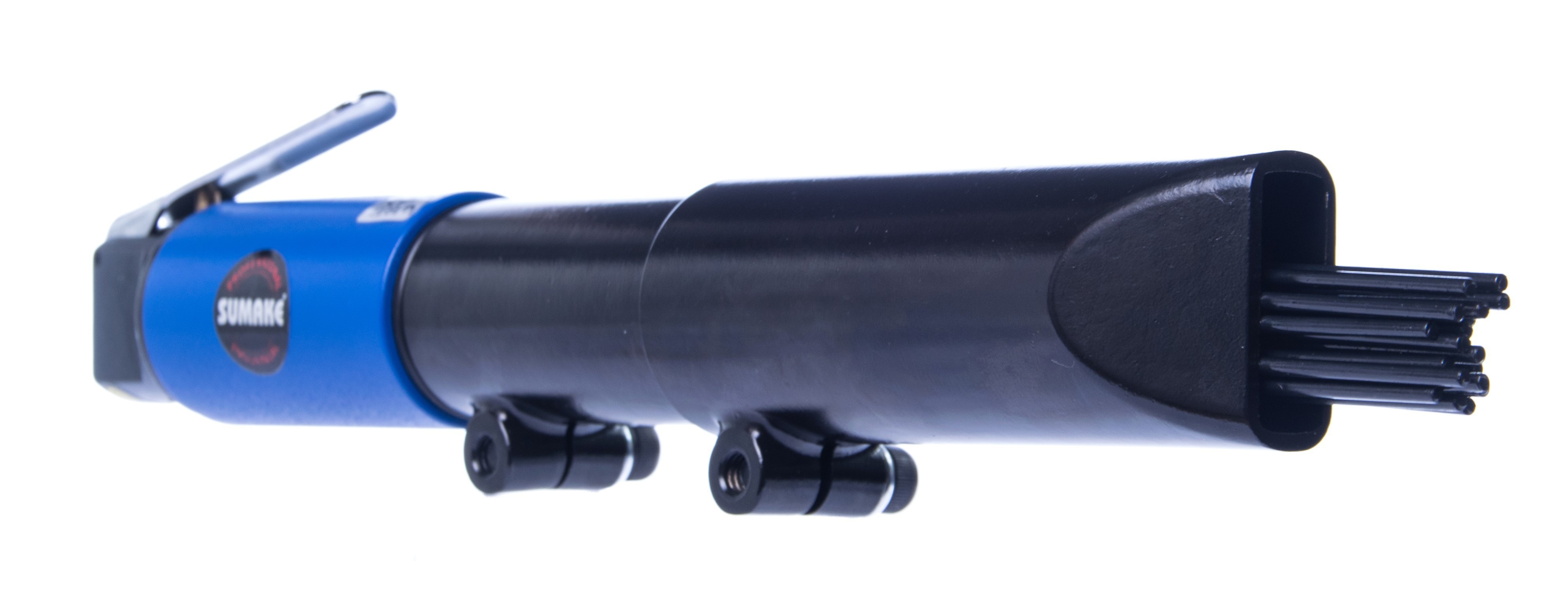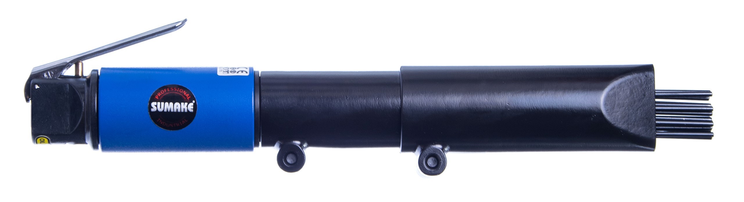 Profesjonalny pneumatyczny młotek igłowy marki SUMAKE. Wysoka jakość wykonania gwarantuje wytrzymałość urządzenia na najcięższe warunki przemysłowe i warsztatowe. Młotek przeznaczony jest do obijania szlaki, usuwania rdzy, czyszczenia elementów metalowych itp.