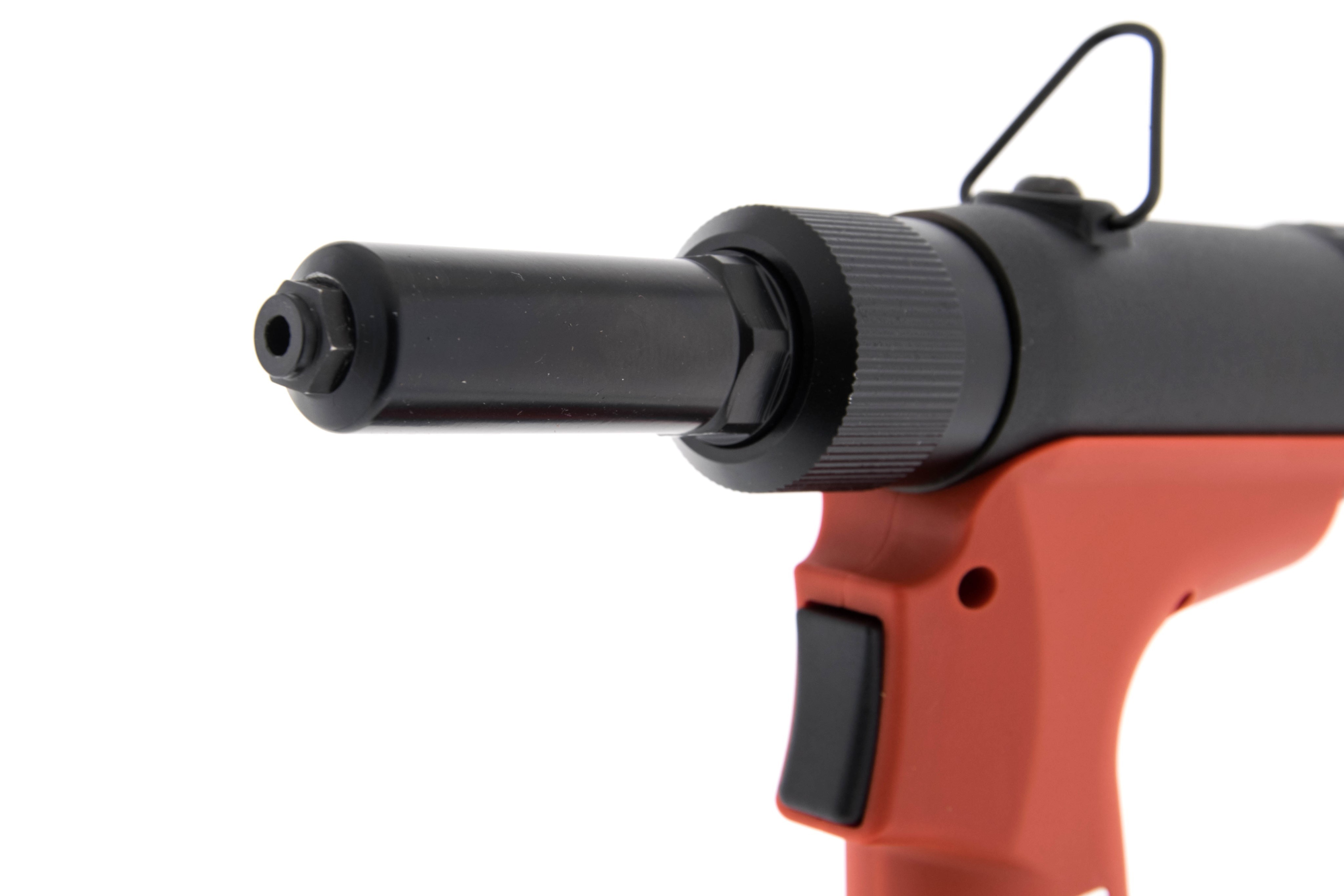 Przemysłowa nitownica pneumatyczna marki MAGNUM. Przeznaczona do pracy z nitami wykonanymi ze stali, stali nierdzewnej, aluminium i miedzi. Ergonomiczny kształt, dobre wyważenie oraz niewielka masa czynią z niej wygodne w pracy urządzenie. W standardowym wyposażeniu posiada wtyczkę pneumatyczną na przegubie kulowym, oraz zawieszkę do balansera. Doskonałe parametry robocze oraz wysoka trwałość sprawiają, że jest to doskonałe narzędzie pracy w zastosowaniach przemysłowych.