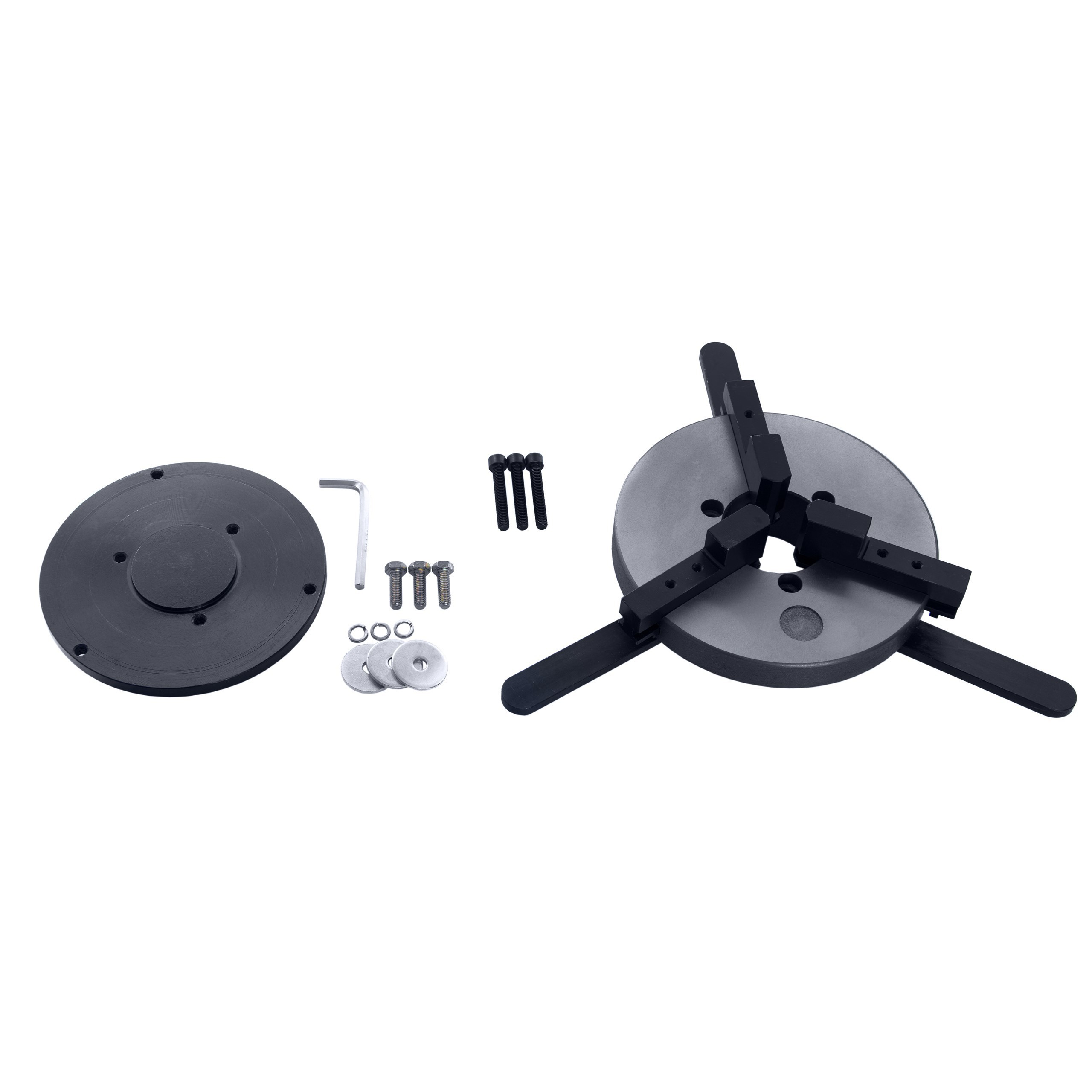 Uchwyt samocentrujący 3-szczękowy z odwracanymi szczękami Magnum D-300 w zestawie z adapterem mocującym do pozycjonera (obrotnika).