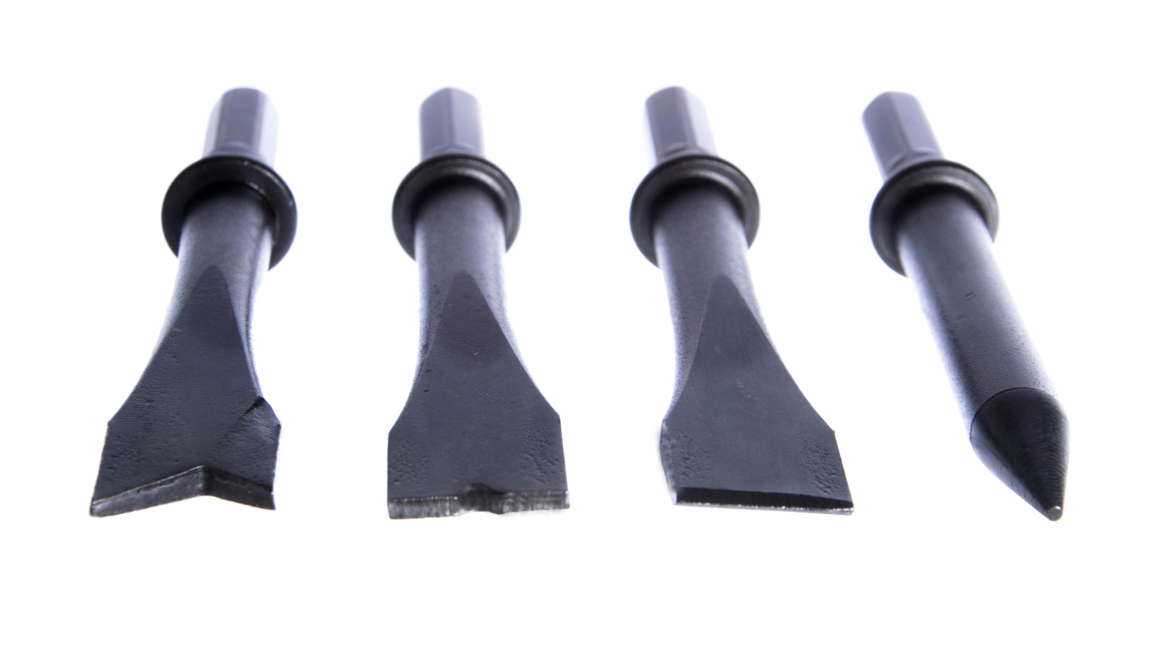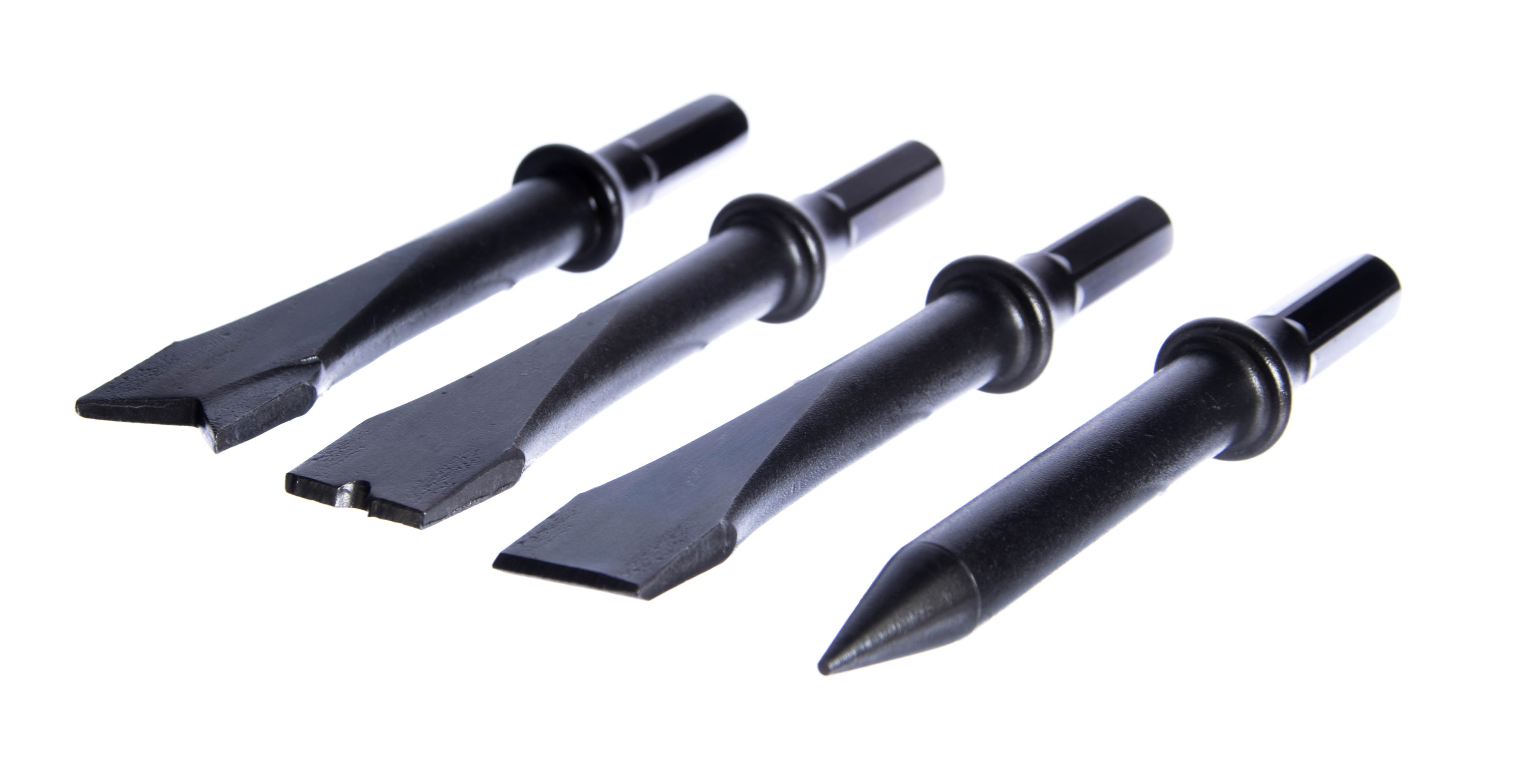 Groty zapasowe do młotków pneumatycznych firmy MAGNUM. W zestawie znajdują się cztery krótkie dłuta z sześciokątnym trzpieniem. Groty kompatybilne są z większością młotków pneumatycznych które posiadają sześciokątne gniazdo o średnicy 10 mm. Produkt wykonany z utwardzanej stali konstrukcyjnej.