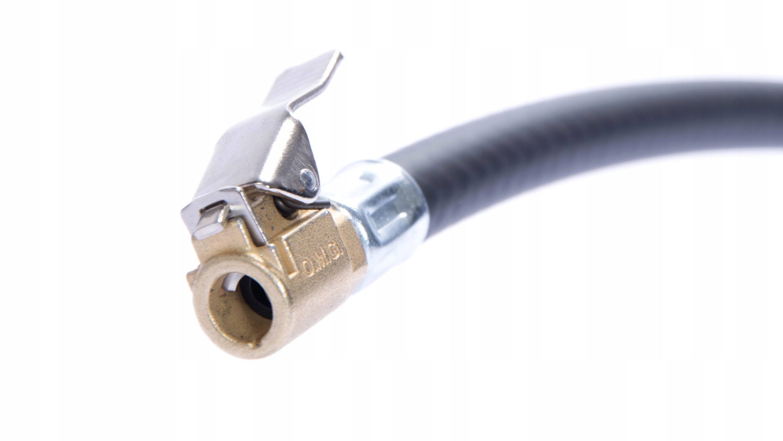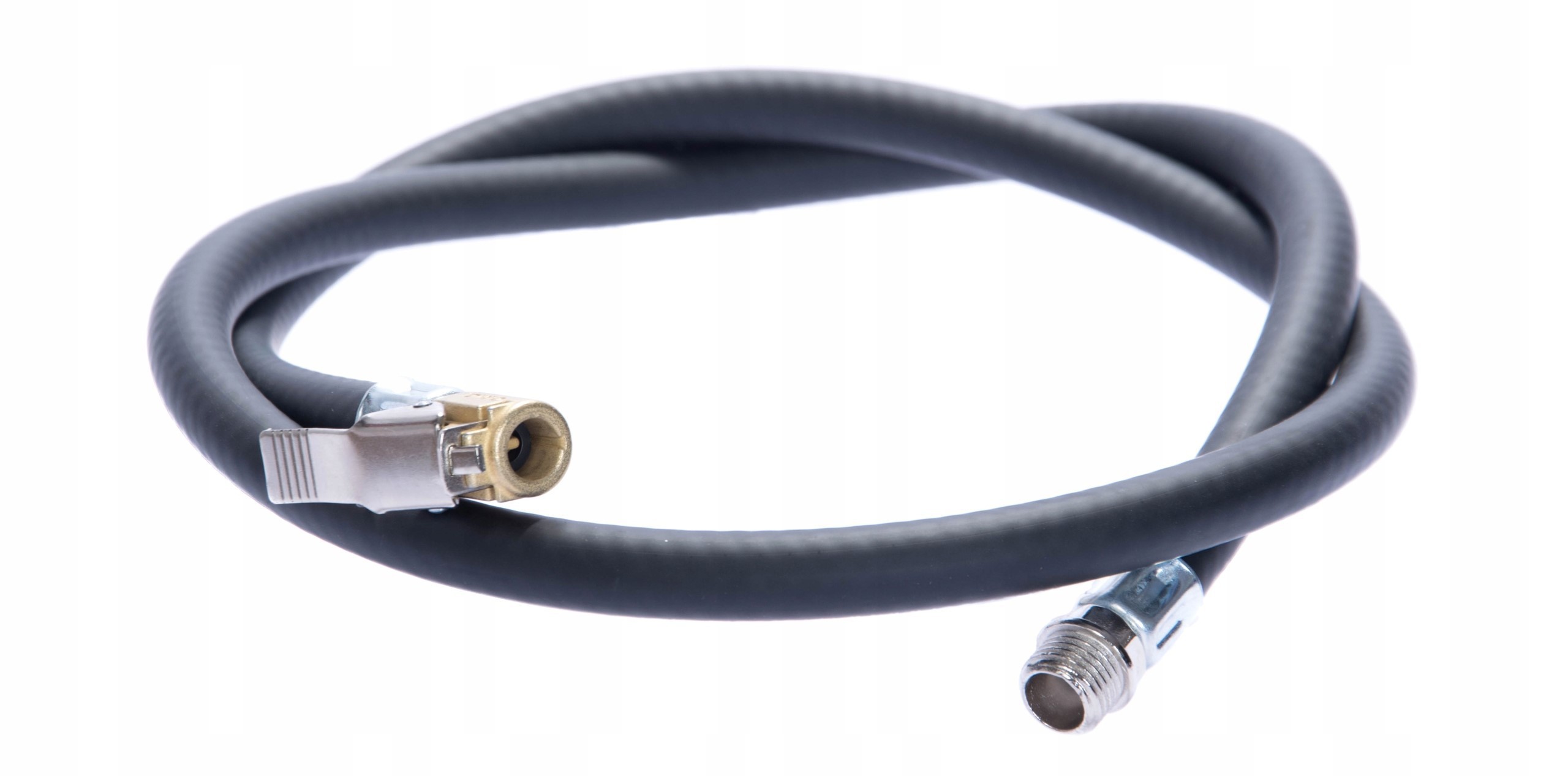 Wysokiej jakości włoski przewód gumowy do pompowania zakuty w standardową końcówkę do pompowania, która pasuje do większości wentyli samochodowych, motocyklowych i rowerowych. Wężyk zakończony gwintem zewnętrznym 1/4".