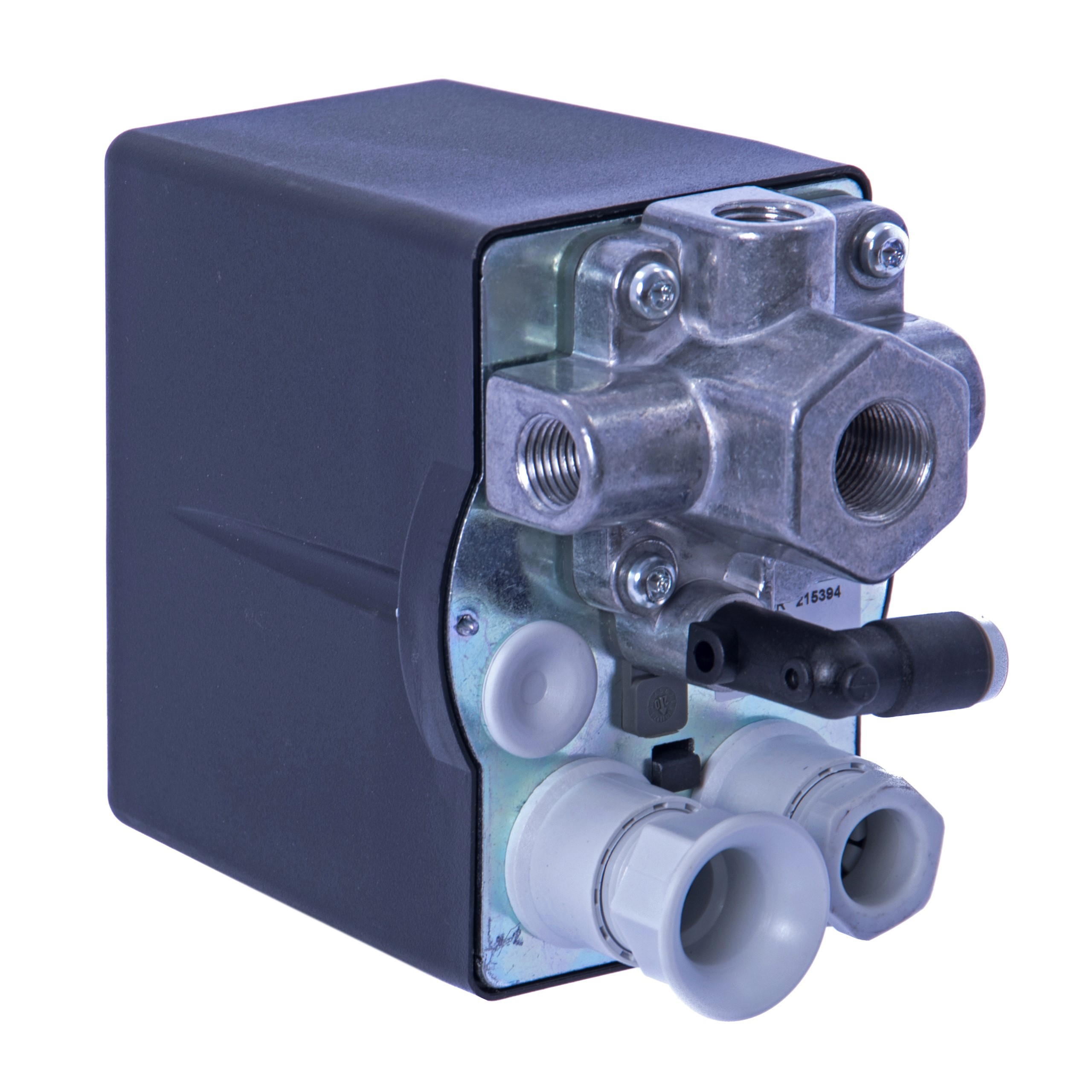 Presostat posiada cztery przyłącza wewnętrzne. Dolny gwint do zamocowania na zbiorniku kompresora i boczne gwinty do których można zamocować dodatkowe elementy według własnego zapotrzebowania - np. manometr, szybkozłącza, reduktor, zawór bezpieczeństwa.