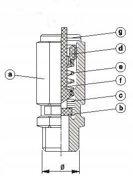 Zawór bezpieczeństwa włoskiej firmy PADOVAN VALERIO, stosowany przy kompresorach wytwarzających ciśnienie maksymalne do 8 bar.