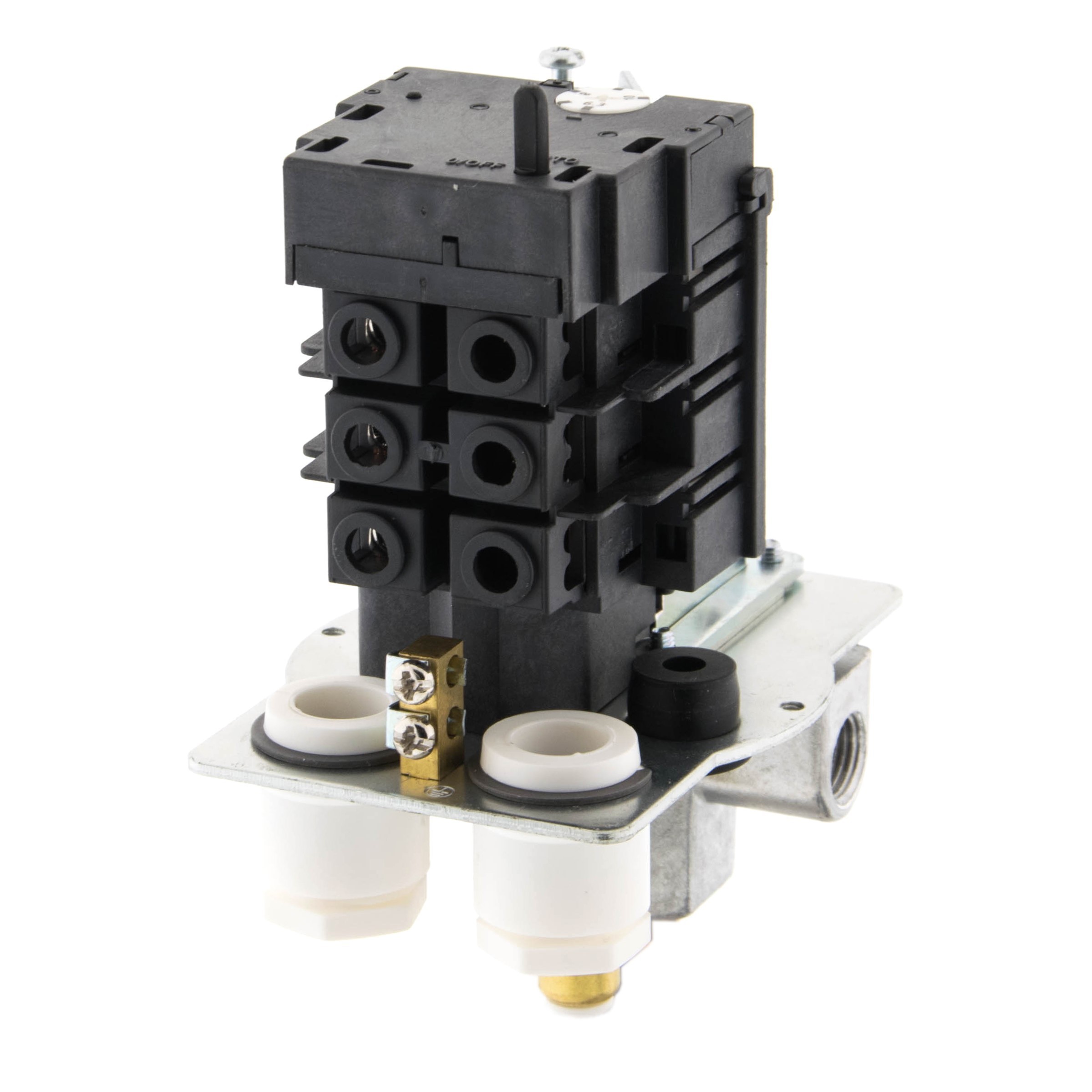 Przełącznik ciśnieniowy marki LEFOO, używany do utrzymywania ciśnienia w zbiorniku kompresora pomiędzy zadaną górną i dolną wartością ciśnienia. Sterownik przeznaczony do silników trójfazowych.