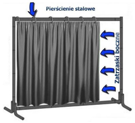 i chronią przed szkodliwością spawania z odległości powyżej 2 metrów. Zasłony posiadają zamontowane zaczepy pozwalające na łączenie zasłon w