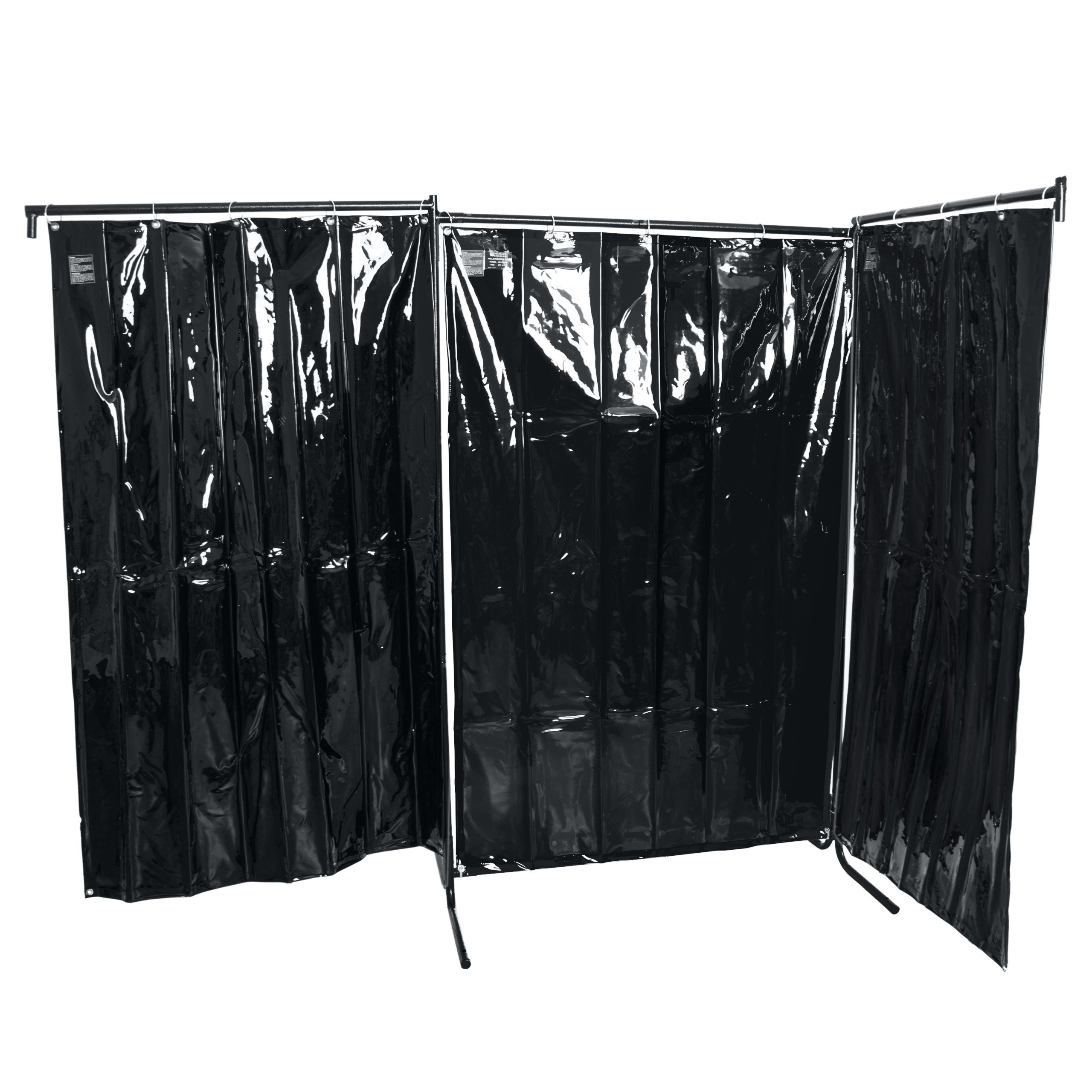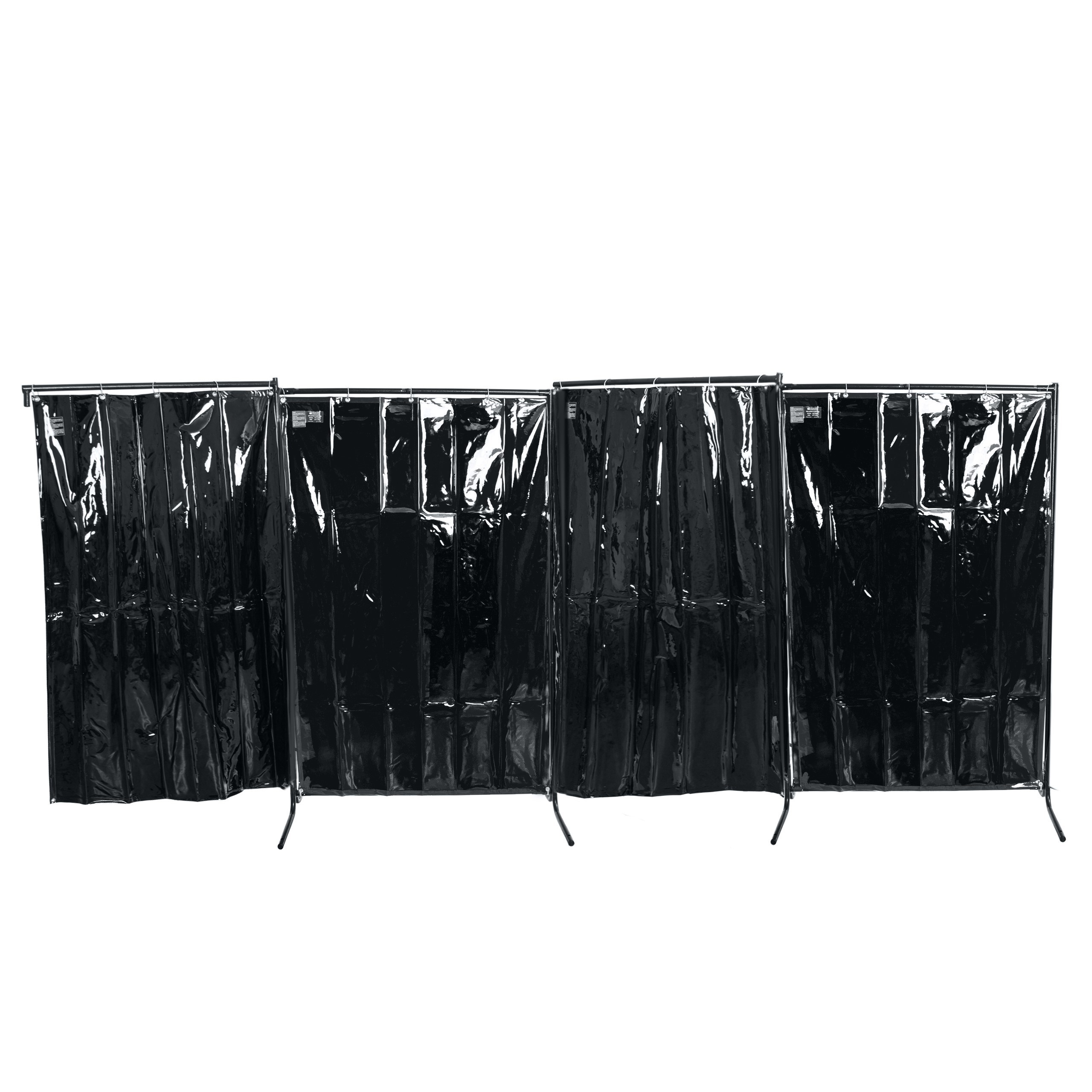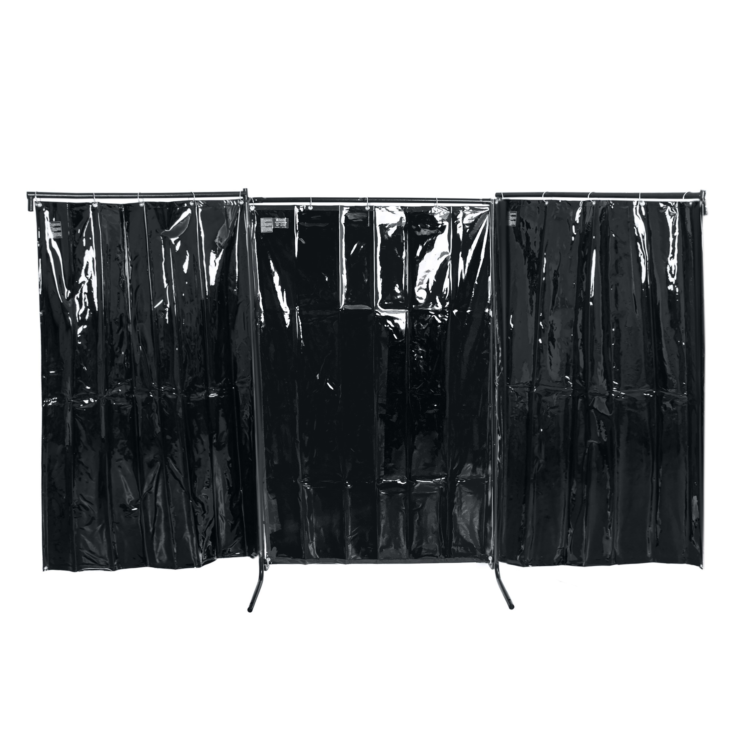 Zestaw zasłon spawalniczych MAGNUM ze stelażem i łącznikiem, przeznaczony do odgradzania stanowisk spawalniczych i tworzenia sekcji. Zapewnia ochronę osobom znajdującym się w pobliżu prac związanych ze spawaniem, cięciem i szlifowaniem. Chroni od promieniowania UV, iskier oraz odprysków spawalniczych o wysokiej intensywności. Zasłony spawalnicze nie są odpowiednikiem filtrów spawalniczych i chronią przed szkodliwością spawania z odległości powyżej 2 metrów.