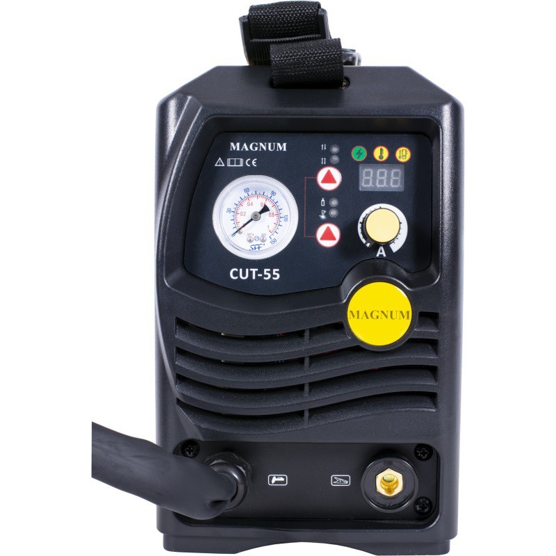 Urządzenie MAGNUM CUT-55 zostało zbudowane w oparciu o najnowszą technologię wykorzystującą tranzystory IGBT, co przekłada się na zmniejszenie zakłóceń elektromagnetycznych, małe straty mocy, zwiększenie wydajności i niezawodności źródła prądu oraz zmniejszenie zużycia energii.Przecinarka wyposażona jest w przeciążeniowe zabezpieczenie termiczne. Jej zaletą jest niska masa oraz płynna regulacja prądu cięcia zapewniająca wysoką jakość cięcia materiału.