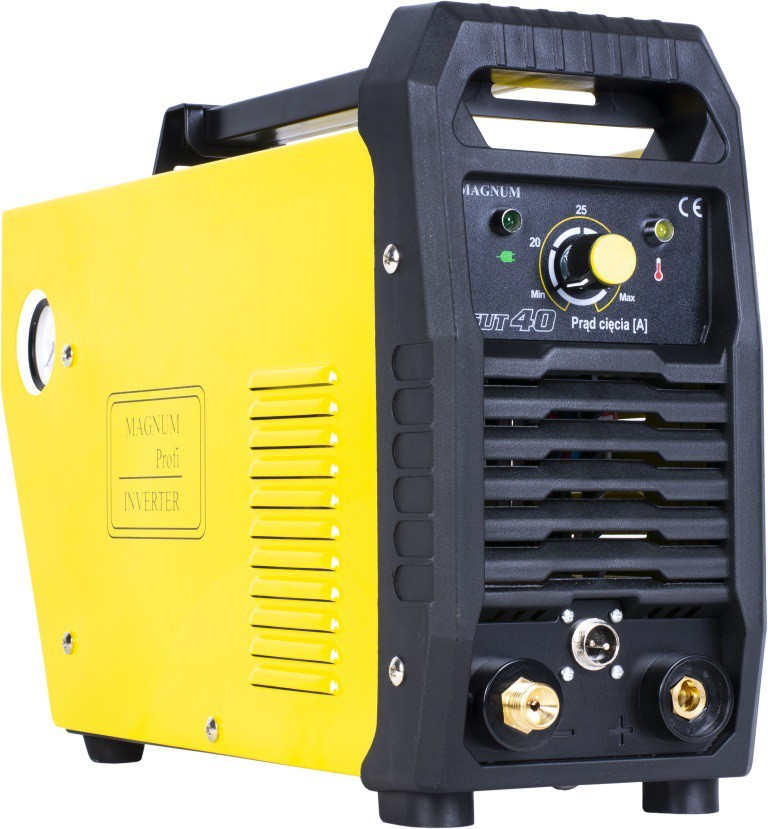 Urządzenie MAGNUM CUT 40 zostało zbudowane w oparciu o najnowszą technologię wykorzystującą tranzystory IGBT, co przekłada się na zmniejszenie zakłóceń elektromagnetycznych, małe straty mocy, zwiększenie wydajności i niezawodności źródła prądu oraz zmniejszenie zużycia energii. Przecinarka wyposażona jest w przeciążeniowe zabezpieczenie termiczne. Jej zaletą jest niska masa oraz płynna regulacja prądu cięcia zapewniająca wysoką jakość cięcia materiału.