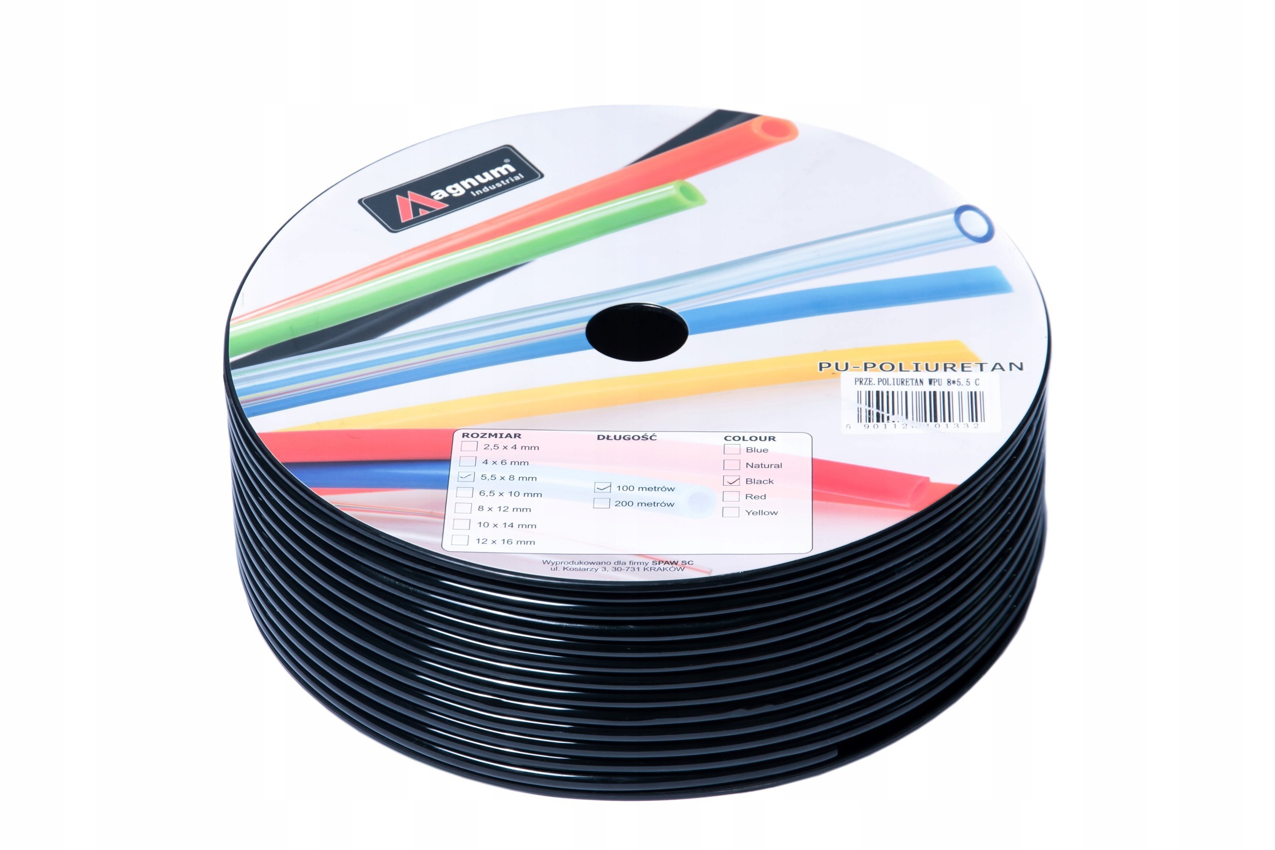 Elastyczny i wytrzymały przewód poliuretanowy. Wąż posiada kalibrowaną średnicę zewnętrzną, przeznaczony do montażu ze złączami wtykowymi. Przewód charakteryzuje się wysoką odpornością chemiczną, nadaje się do stosowania w różnych aplikacjach. Węże nie posiadają " efektu pamięci", są odporne na ścieranie.