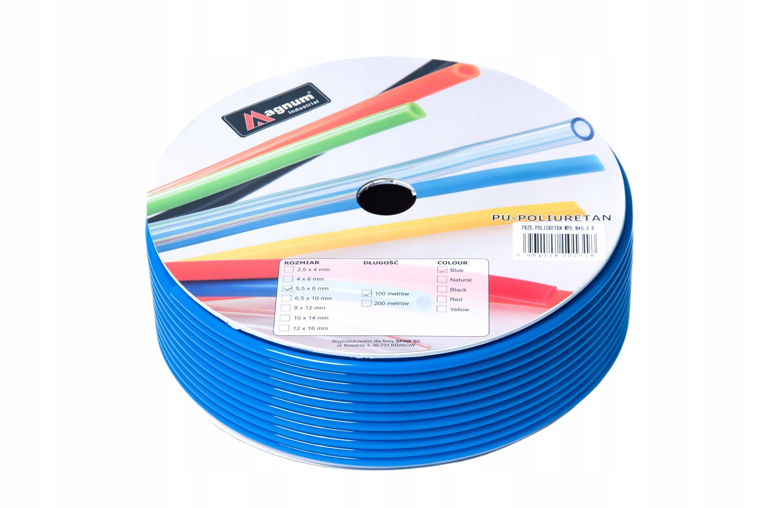 Elastyczny i wytrzymały przewód poliuretanowy. Wąż posiada kalibrowaną średnicę zewnętrzną, przeznaczony do montażu ze złączami wtykowymi. Przewód charakteryzuje się wysoką odpornością chemiczną, nadaje się do stosowania w różnych aplikacjach. Węże nie posiadają " efektu pamięci", są odporne na ścieranie.