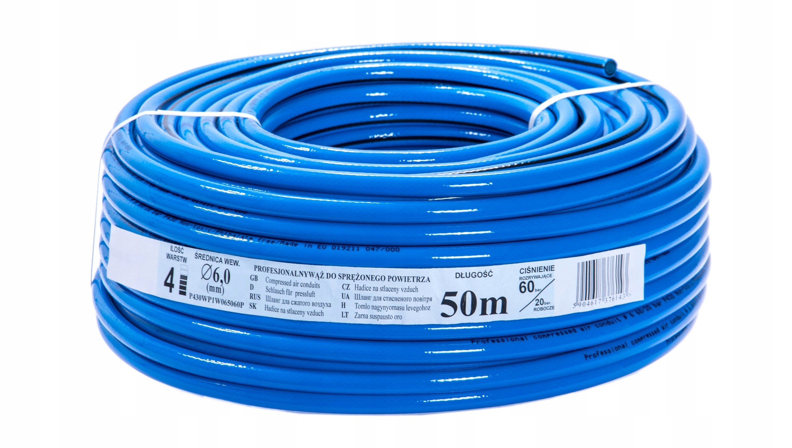 Wąż techniczny 4-warstwowy o zwiększonej szczelności i odporności na rozwarstwianie. Przewód wykonany jest z elastycznego PCV na bazie suspensyjnego polichlorku winylu, tereftalanu oraz innych komponentów, dodatkowo wzmocniony oplotem tekstylnym. Przeznaczony do transportu sprężonego powietrza, odporny na mgiełkę olejową oraz skręcanie.