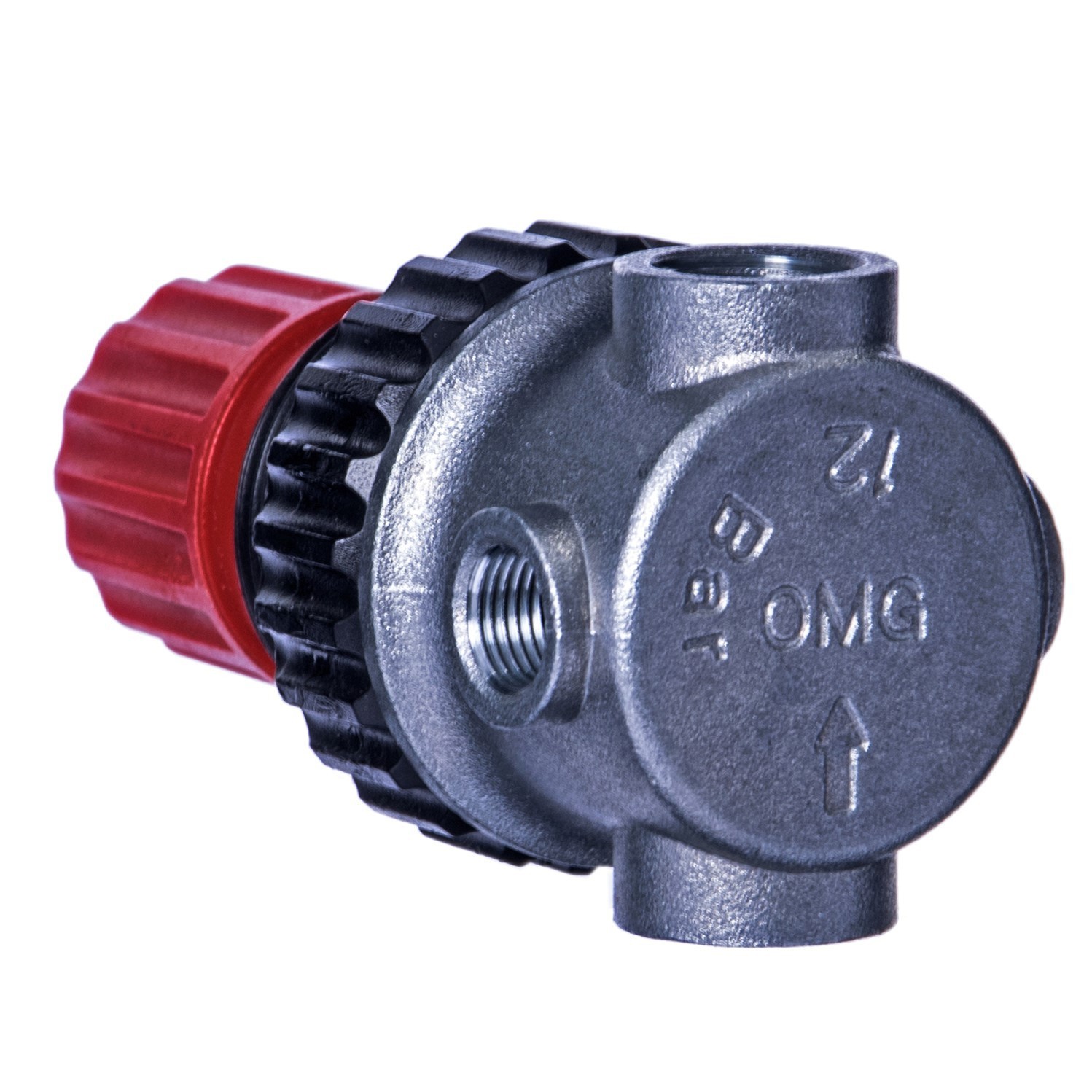 Profesjonalny reduktor ciśnienia powietrza Włoskiej marki OMG. Reduktor membranowy pozwala na ustalenie stałej wartości ciśnienia wyjściowego niezależnie od wahań ciśnienia wejściowego przekraczającego ciśnienie wyjściowe. Reduktor posiada trzy przyłącza gwintowane do których można zamocować złącza według swoich potrzeb.