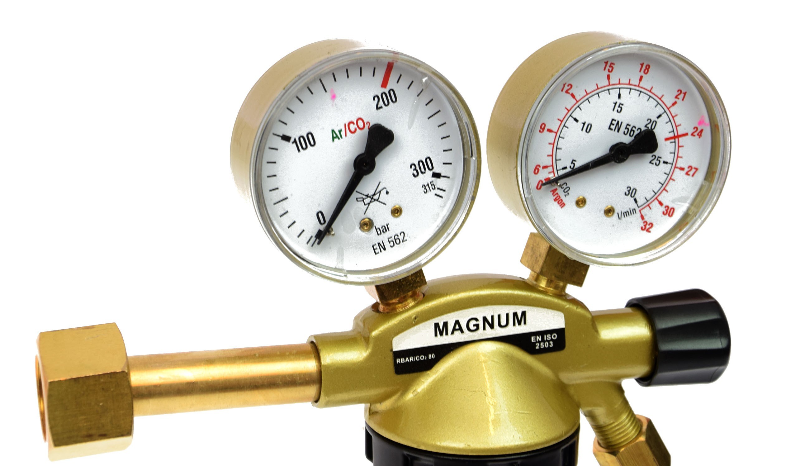 Solidny, dokładny reduktor butlowy marki MAGNUM z zaworem odcinającym przeznaczony do gazów typu ARGON, DWUTLENEK WĘGLA oraz mieszanek tych gazów Ar/CO2.