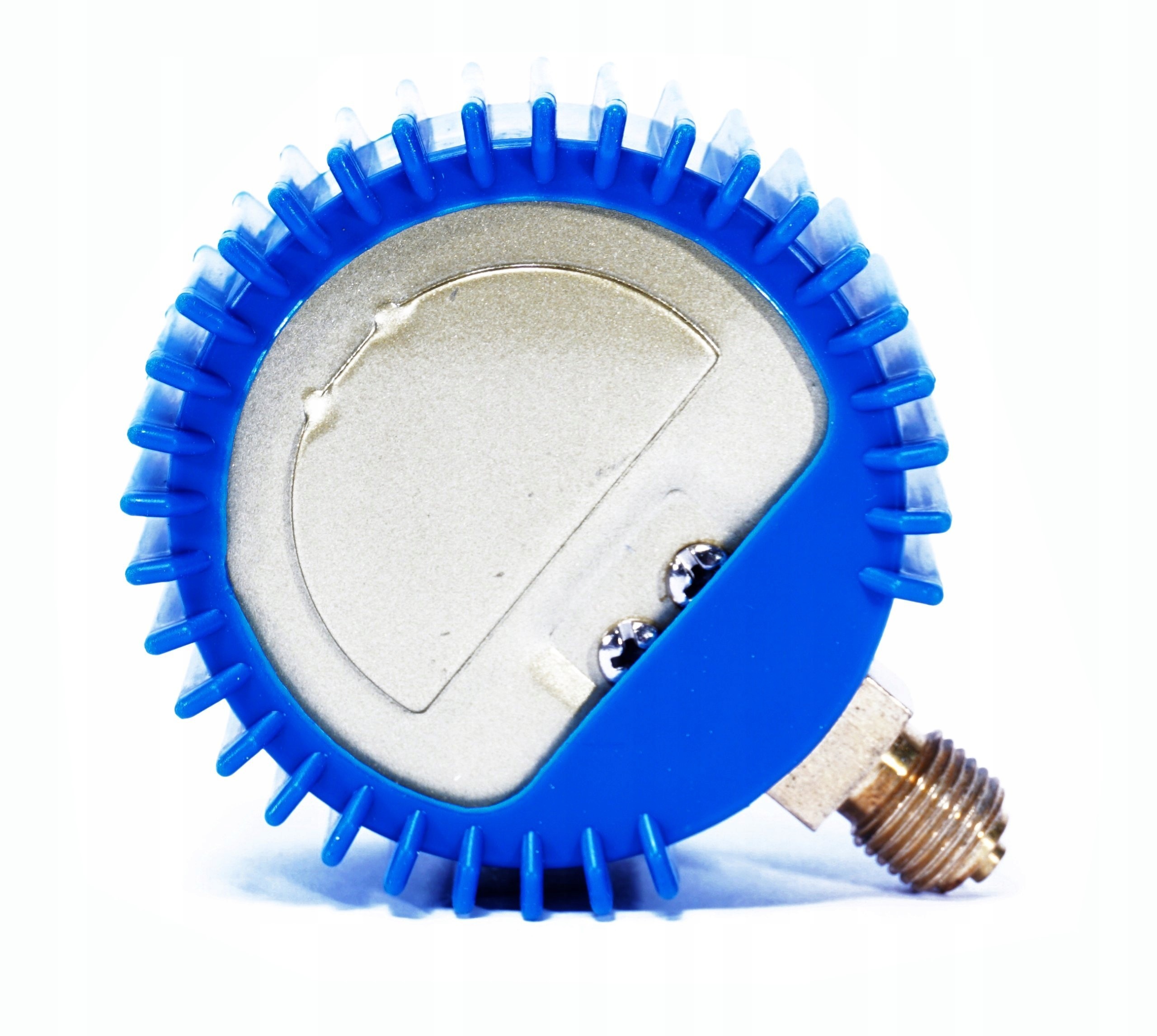 Manometr zegarowy do reduktorów butlowych spawalniczych z osłoną gumową. Manometr działa na zasadzie sprężystego odkształcenia sprężyny rurkowej Bourdona pod wpływem zmiany zadanego ciśnienia.
