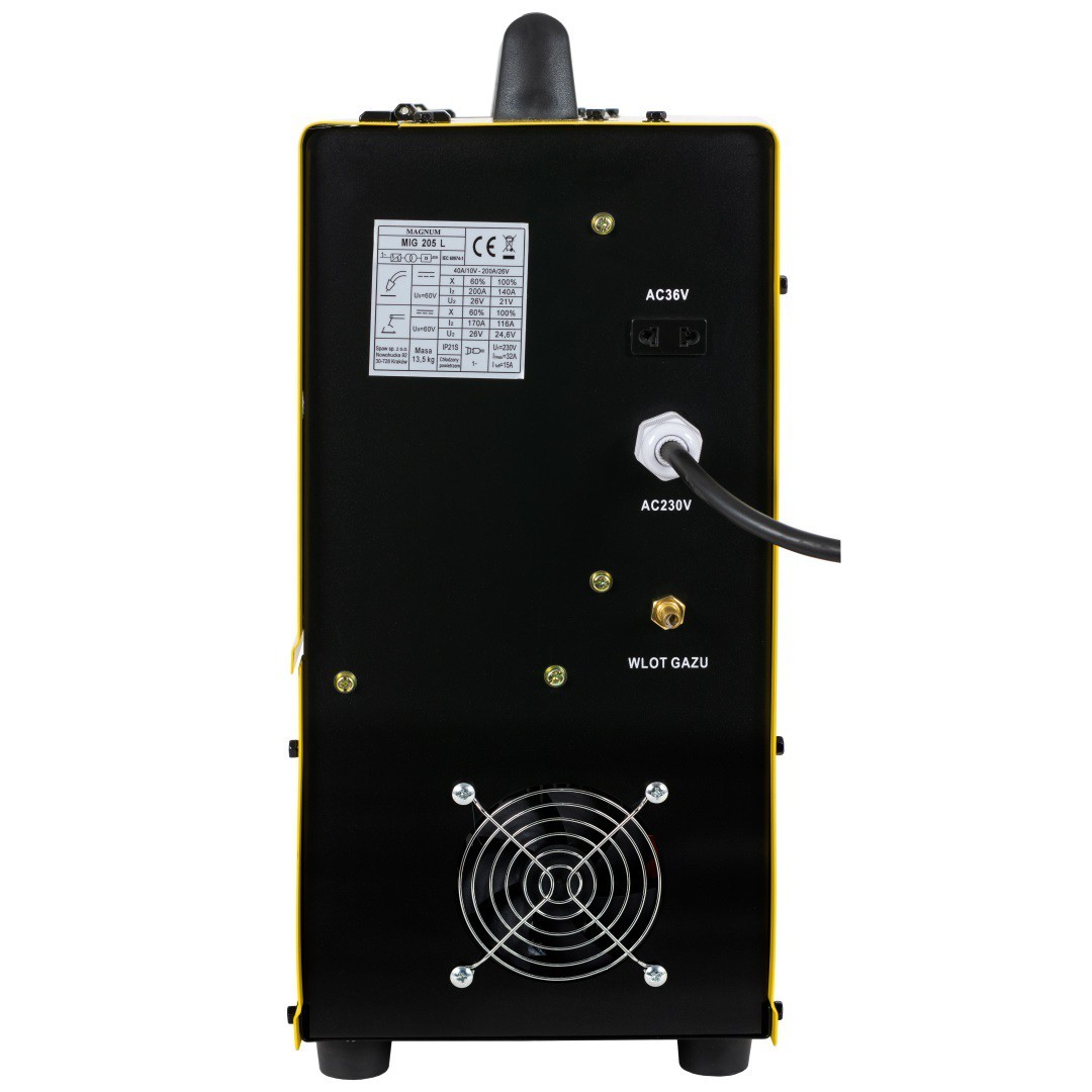 MIG 205 L firmy MAGNUM jest profesjonalnym półautomatem spawalniczym przeznaczonym do spawania stali niskowęglowej, niskostopowej (MAG), stali stopowych (MIG), aluminium i jego stopów oraz do lutospawania!!! Posiada również możliwość spawania elektrodami otulonymi (rutylowe, zasadowe, kwaśne - MMA), a także drutami samoosłonowymi (spawanie "bez gazu"). Urządzenie to znajduje zastosowanie w ciężkich warunkach produkcyjnych (przemysłowych), jak i w warsztatach naprawczych. Dzięki zastosowaniu ustawień synergicznych i czytelnego ekranu LCD, urządzenie jest