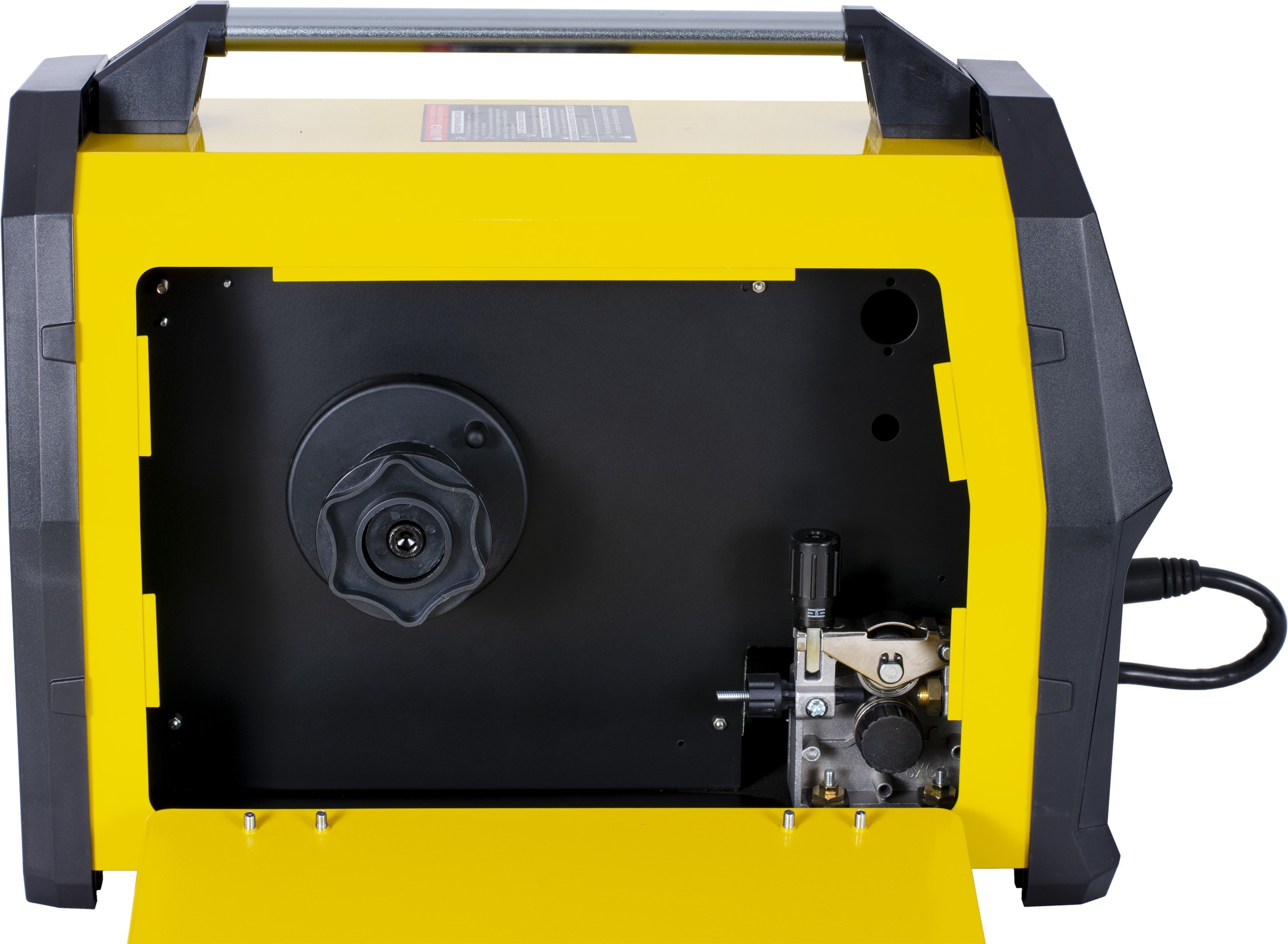 Urządzenie posiada płynną regulacje parametrów spawania, wyposażone jest w przeciążeniowy układ zabezpieczenia termicznego, zapobiegający nadmiernemu przegrzewaniu się. Spawarka wyposażona jest w 2-rolkowy podajnik drutu z gniazdem "euro złącze" pozwala na podłączenie różnych typów uchwytów spawalniczych.