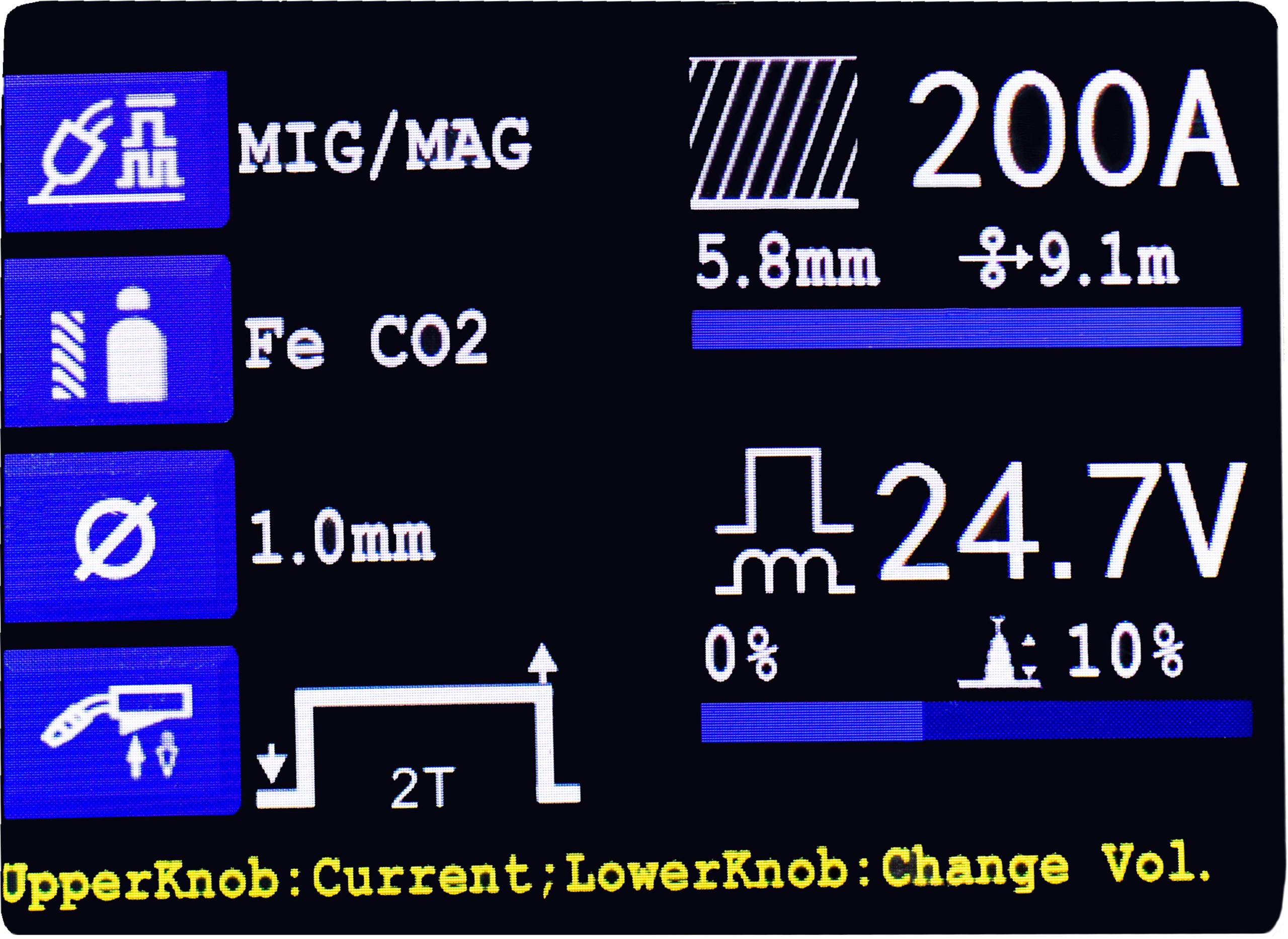 Oferowane urządzenie wykonanym w technologii inwertorowej z mikrokontrolerem MCU (scalony system mikroprocesorowy). Wyposażona jest w duży kolorowy wyświetlacz LCD oraz intuicyjny, łatwy w obsłudze panel sterowania, który pozwala na szybkie ustawienie wszystkich najważniejszych parametrów spawania. Spawarka posiada funkcję pojedynczego i podwójnego PULSU oraz synergiczne sterowanie.